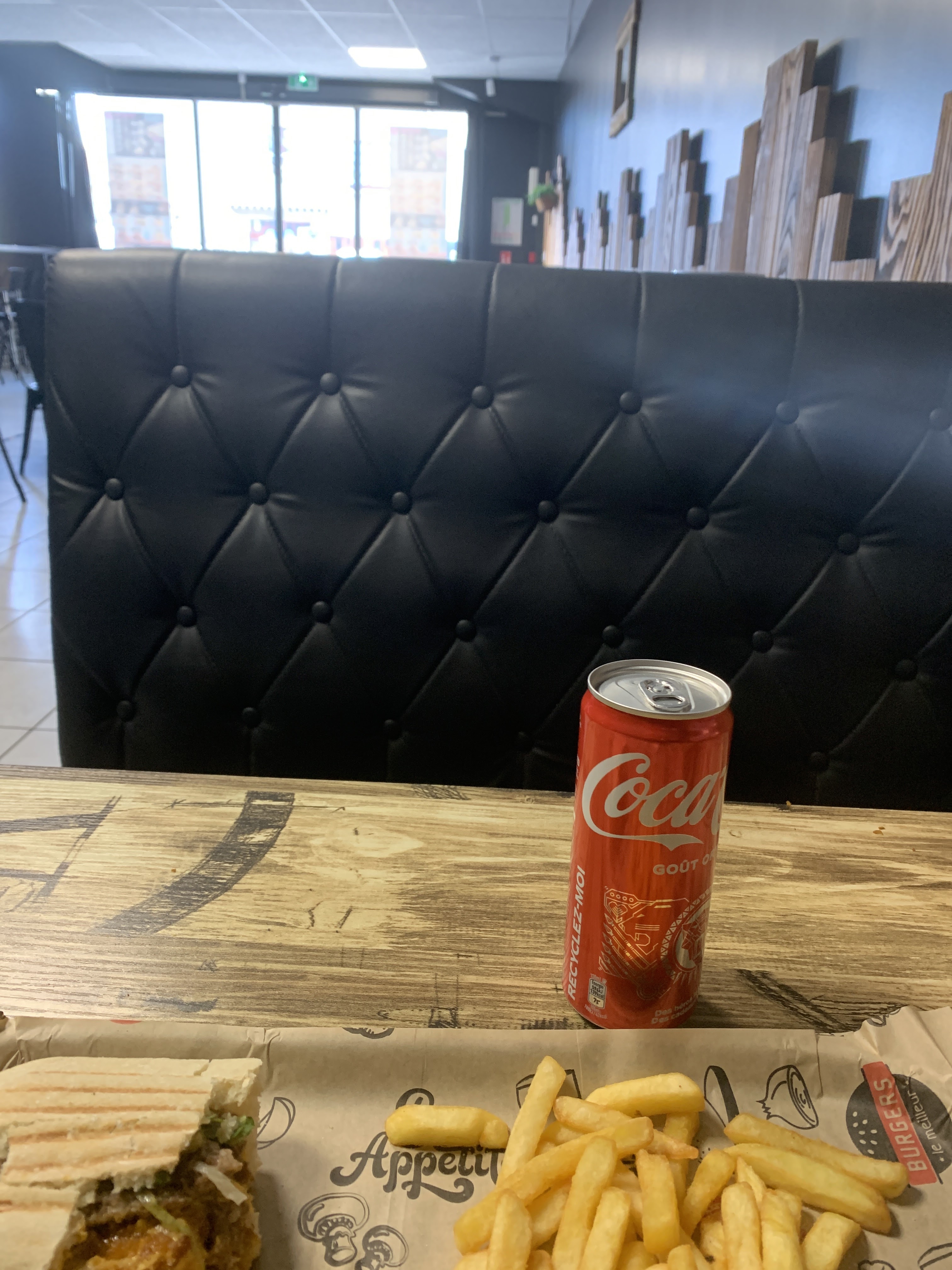 Ça m'énerve de dire ça mais aujourd'hui c'est difficile de donner de bonnes notes ! Le pain de hamburger c'est le moins cher du marché il était pas frais ! La salade on le voyait même pas la une chose qu'il était bonne c'était le tomate ! La viande elle avait un goût bizarre surgeler bien sûr mais d'une très mauvaise qualité ! Les prix trop cher ! Pour la prestation de service ! Aujourd'hui les gens ils pensent que à l'argent ! jamais au travail ! Quand je suis rentré le restaurant était vide ! Ils étaient en train de toucher lu portable et le salon il était pas propre? Dommage