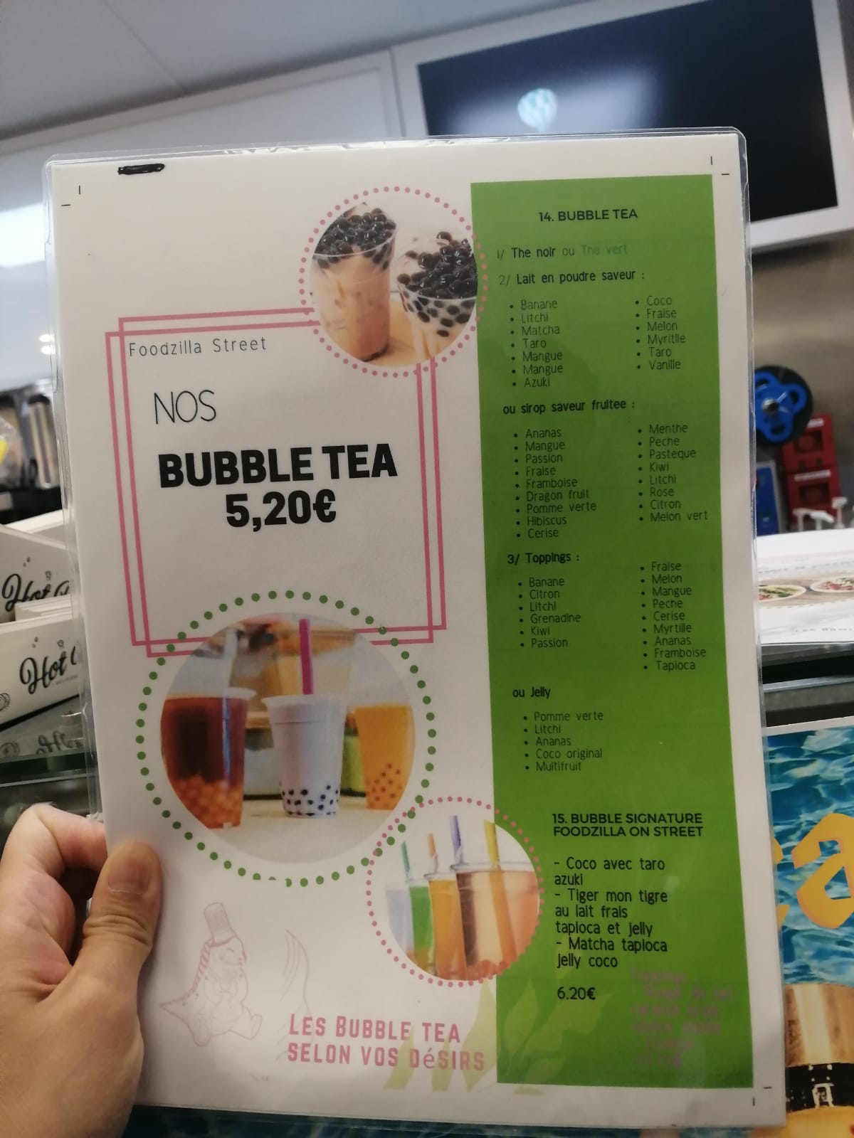 Meilleurs bubble teas du centre ! La nourriture est super bonne ! Streetfood coréenne et japonaise. Plusieurs plats asiatiques j'en ai déjà goûté plusieurs et rien à dire beaucoup de goût bien servi. Le service est un peu lent quand il y a du monde mais tout est fait à la minute donc c'est compréhensible.