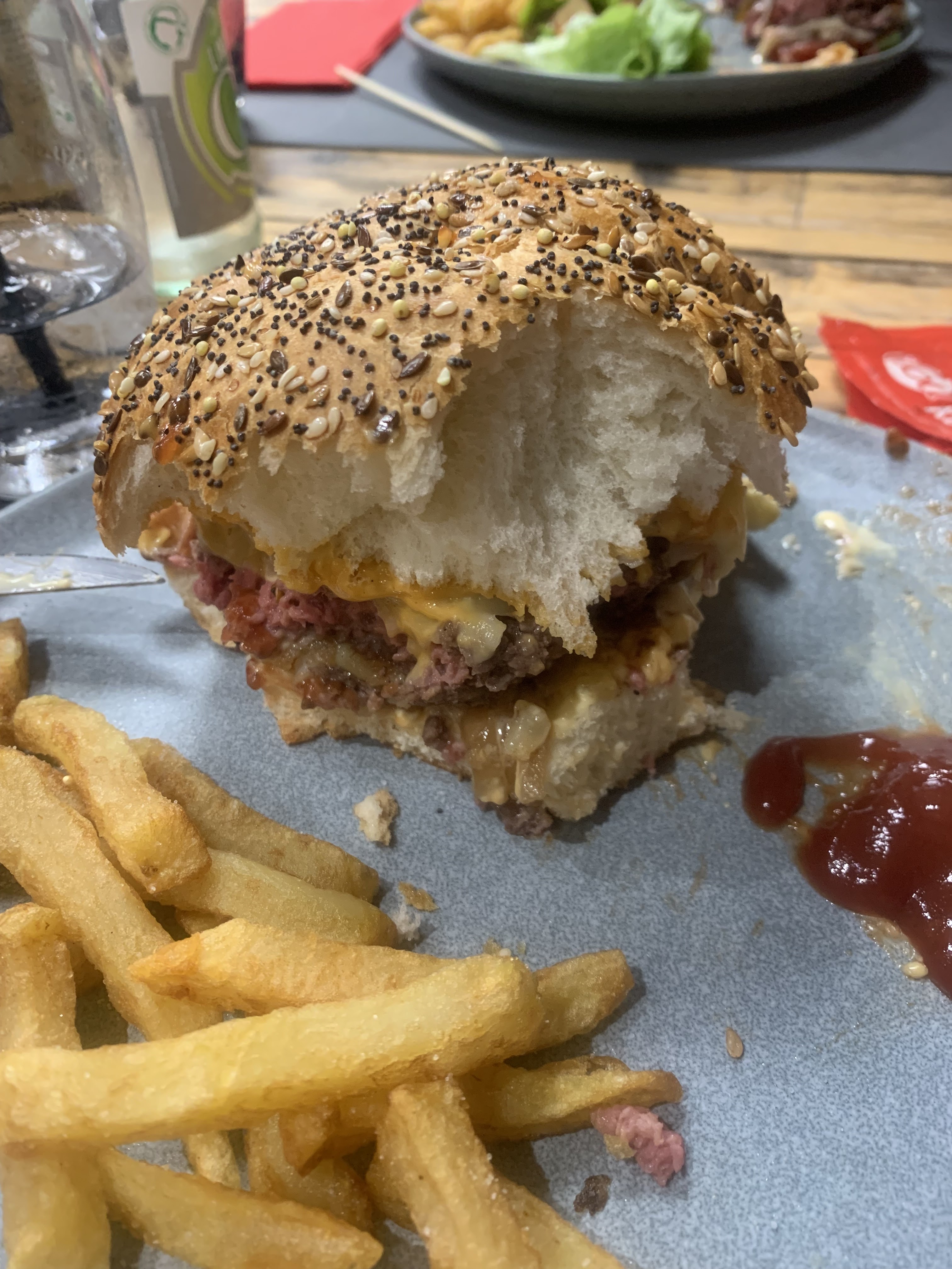 Excellent. Autres fast food déjà oubliés après une commande. Hamburger d'une qualité de restaurant, de plus ils sont copieux. Cependant les frites étaient molles et beaucoup trop grasses.