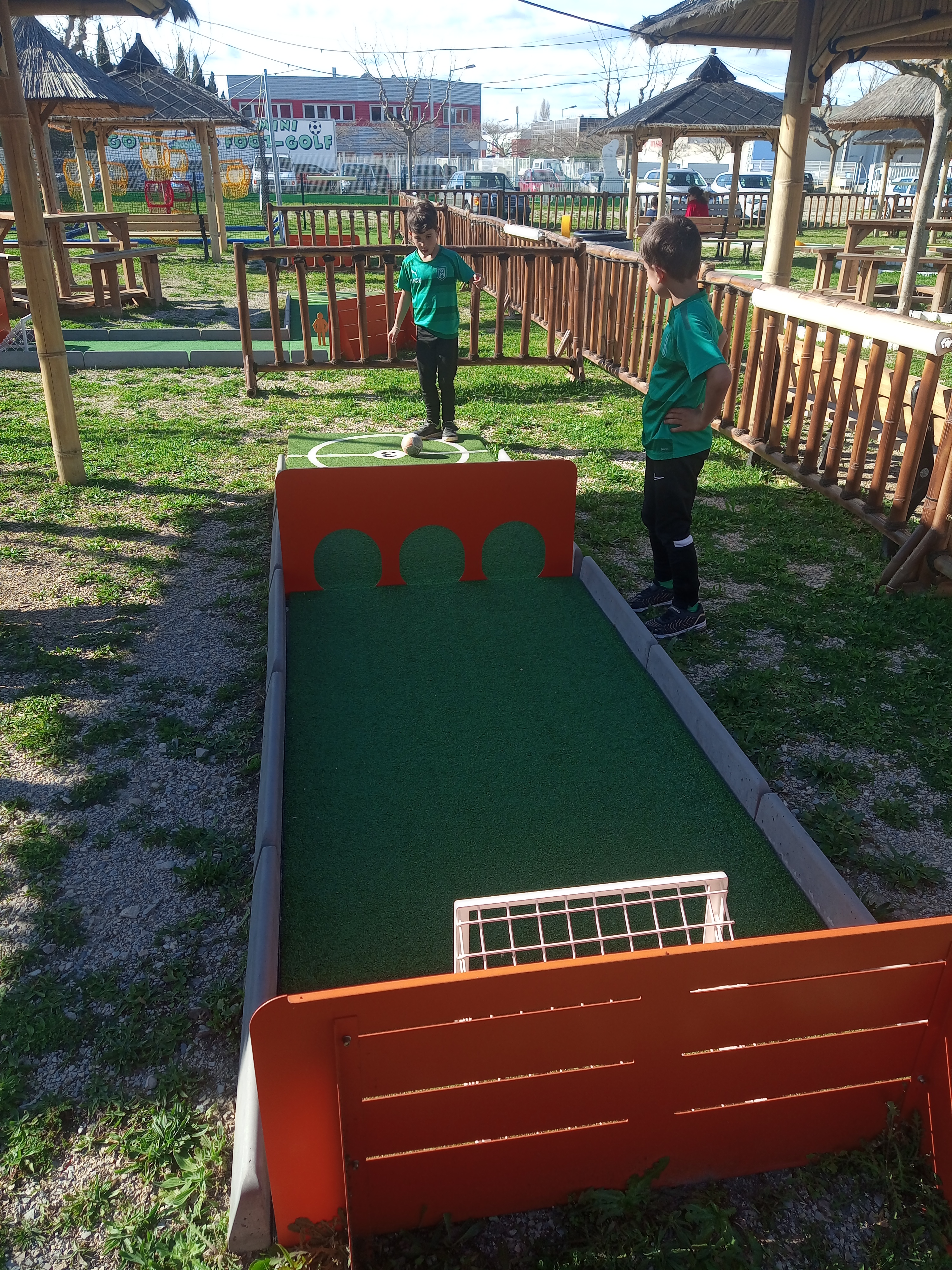 Parfait pour une sortie avec les enfants. Minigolf e5 footgolf dans un très bon état et assez grand pour passer un bon après-midi. Petit attractions juste a côté qui viennent compléter l'après-midi. Le service est très bien, ils vous offrent même une crêpe ! Au top