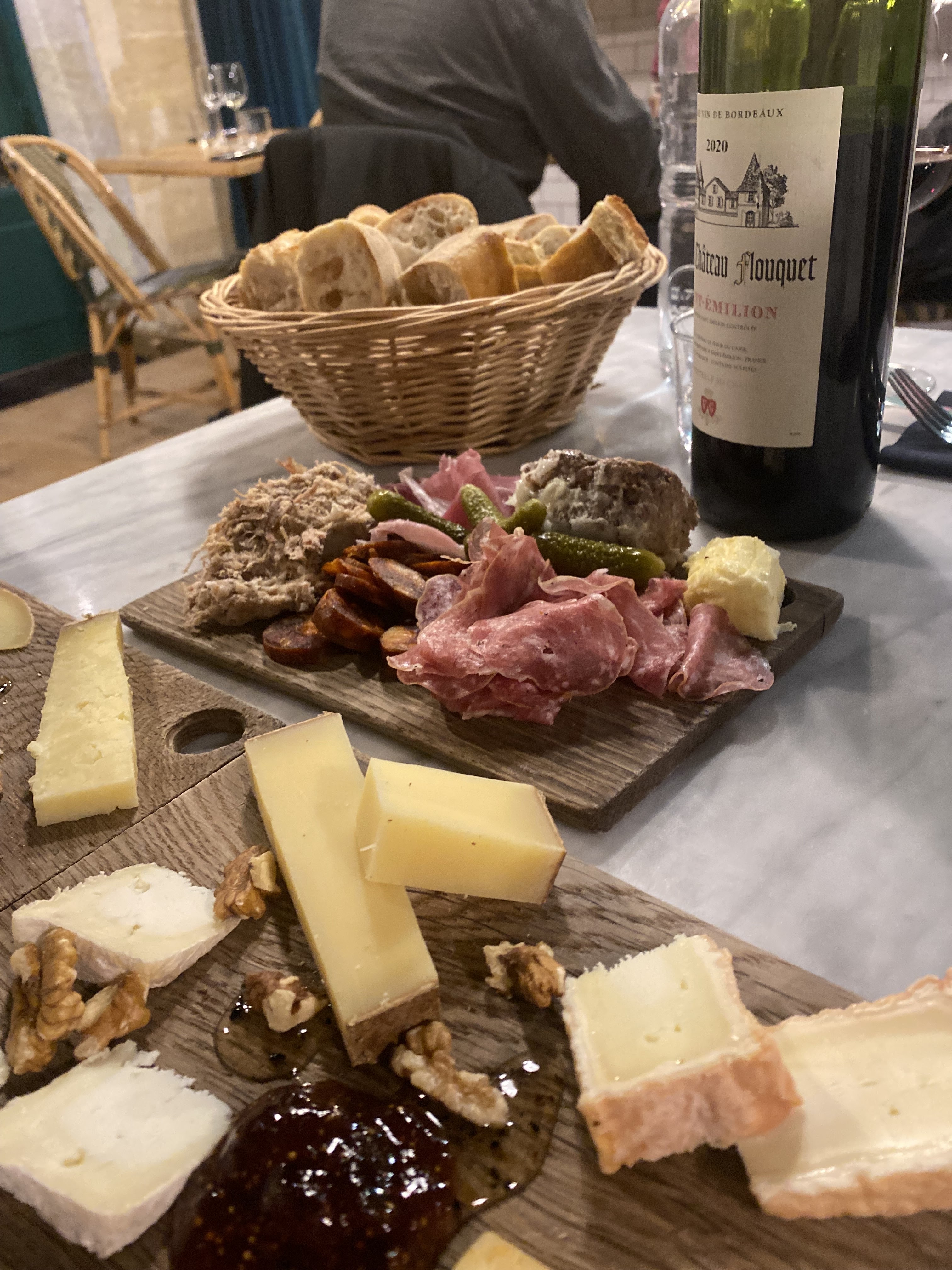 Du pain, du vin et surtout de très bons fromages ! Planchette de charcuteries de bonne qualité également...Cette fois-ci, pas de fromages du Nord et de Normandie, un autre jour peut-être ?