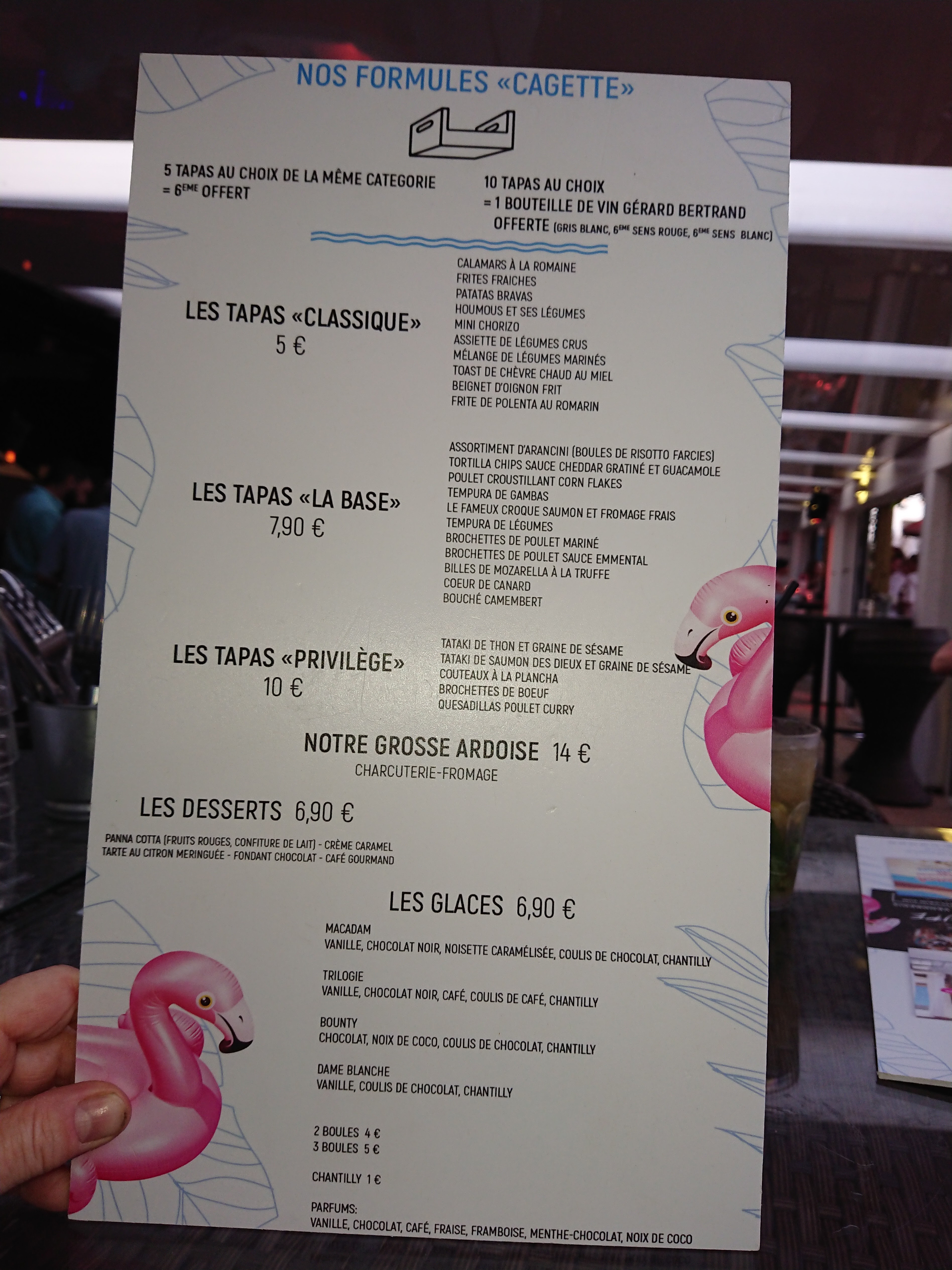 Ce qui nous à été servis n'était pas digne d'un restaurant contrairement au prix. salade cesare tres basic (tenders de poulet coupé en petits carrés, le parmesan était plus proche de l'emmentale que du parmesent ), tagliatelle de seiche sur risotto aux champignon n'était pas mangeable ( seiche pas cuitent, sur se qui resemblait plus a une soupe epaise qu'un risotto sauce champignon) nous avons goutter et avons du recommandé un autre plat. salade asiatique avait une belle présentation, les crudité ont été mangé mais pas le thon cru (nous l'avons goutter, et avons préférer laisser le thon). La table à côté avait commandé des tapas qui parraissait bonne. Le pain n'était pas frais. Nous avons été servi par trois personnes différentes et avons du reclamé par deux fois une carafe d'eau et le pain. pour finir la soirée nous avons commander une bouteille. Dans le seau une des deux bouteilles de Pepsi était déja ouverte car il en manquait, mais les deux bouteilles de Pepsi avait tres peu de Gaz, trouvant cela annormal, nous avons regardé la date et avons vu que la date était passé, cela ne nous a pas empécher de les boires mais nous avons trouvé cela limite par rapport au tarif. Le personnel à été agréable et bien veillant, Le cadre, le décor et l'ambiance sont au top! Nous reviendrons l'année prochaine malheureusement apres manger ou bien nous testerons les tapas.