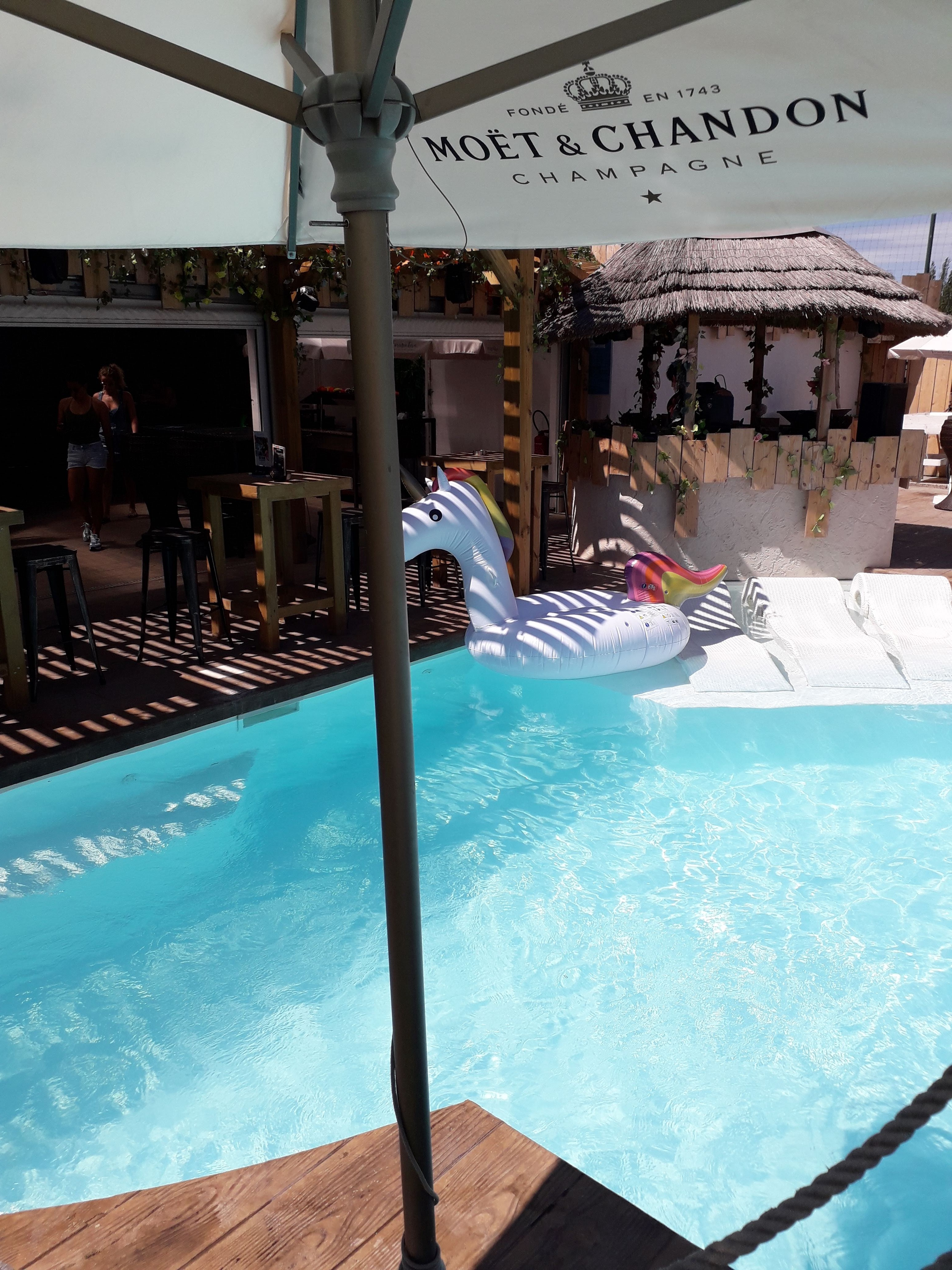 Un lieu superbe avec une équipe au top ! Une cuisine de qualité avec des produits bien travaillés, une carte des boissons avec énormément de choix pour ravir tout le monde ! Niveau musique vous avez le choix entre les debut d’après midi calme et une ambiance de folie plus la journée passe. Petit bémol pour le choix de clientèle qui mélange des enfants avec des jeunes qui n’hésitent pas à arroser la piscine avec du champagne par exemple 😣