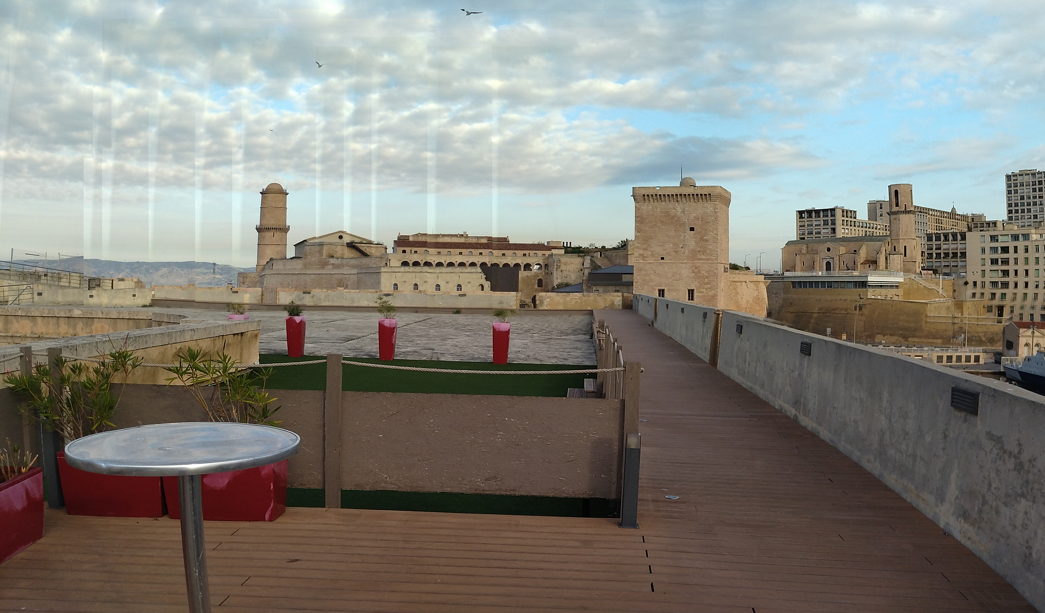 Lieu très agréable, avec une vue improbable sur le vieux port de Marseille.