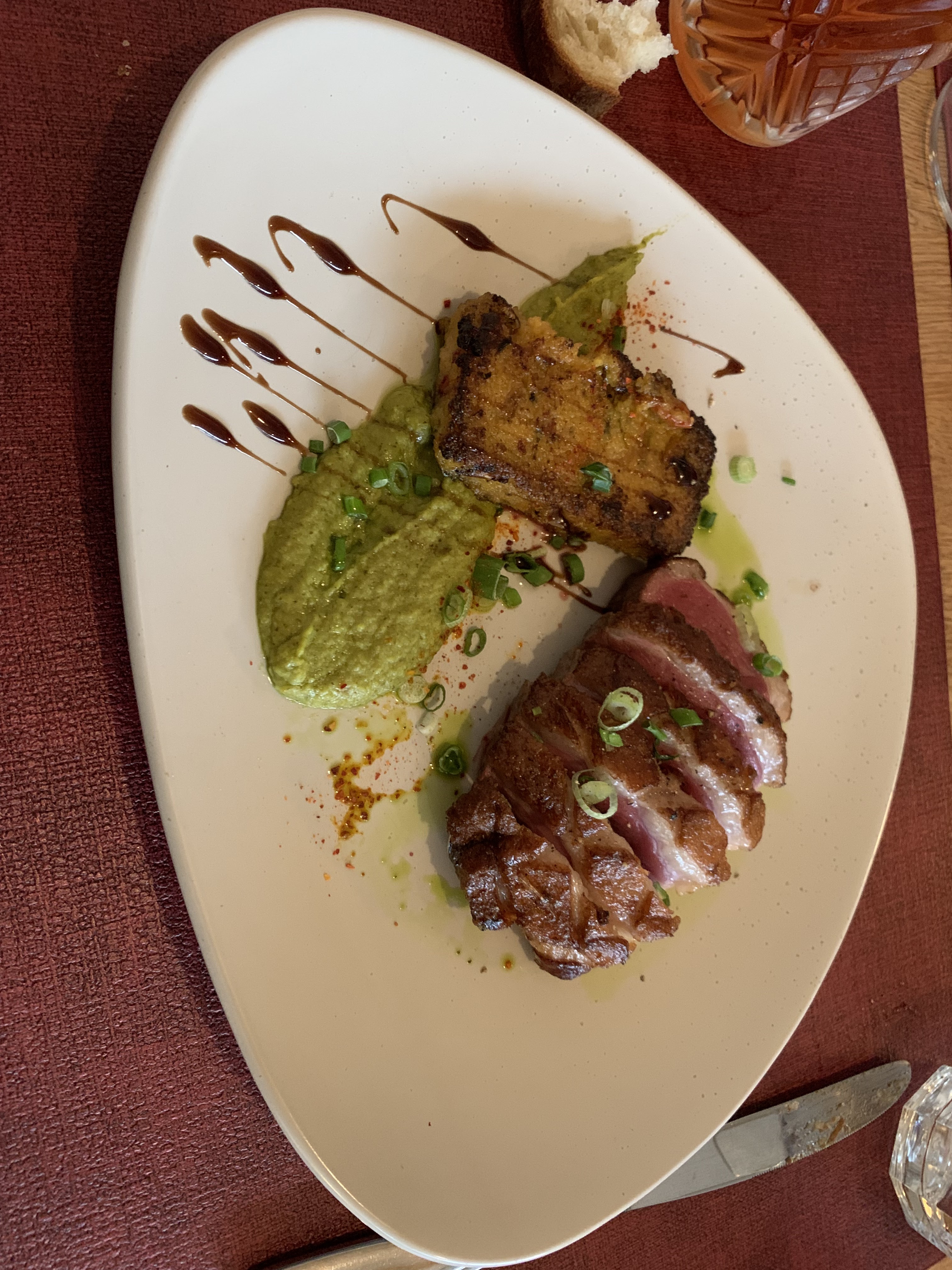 Un excellent repas : foie gras délicieusement assaisonné, découverte du pluma succulent, et pavlova en dessert. Un équipe au petit soin, très sympathique. Merci pour l'accueil !