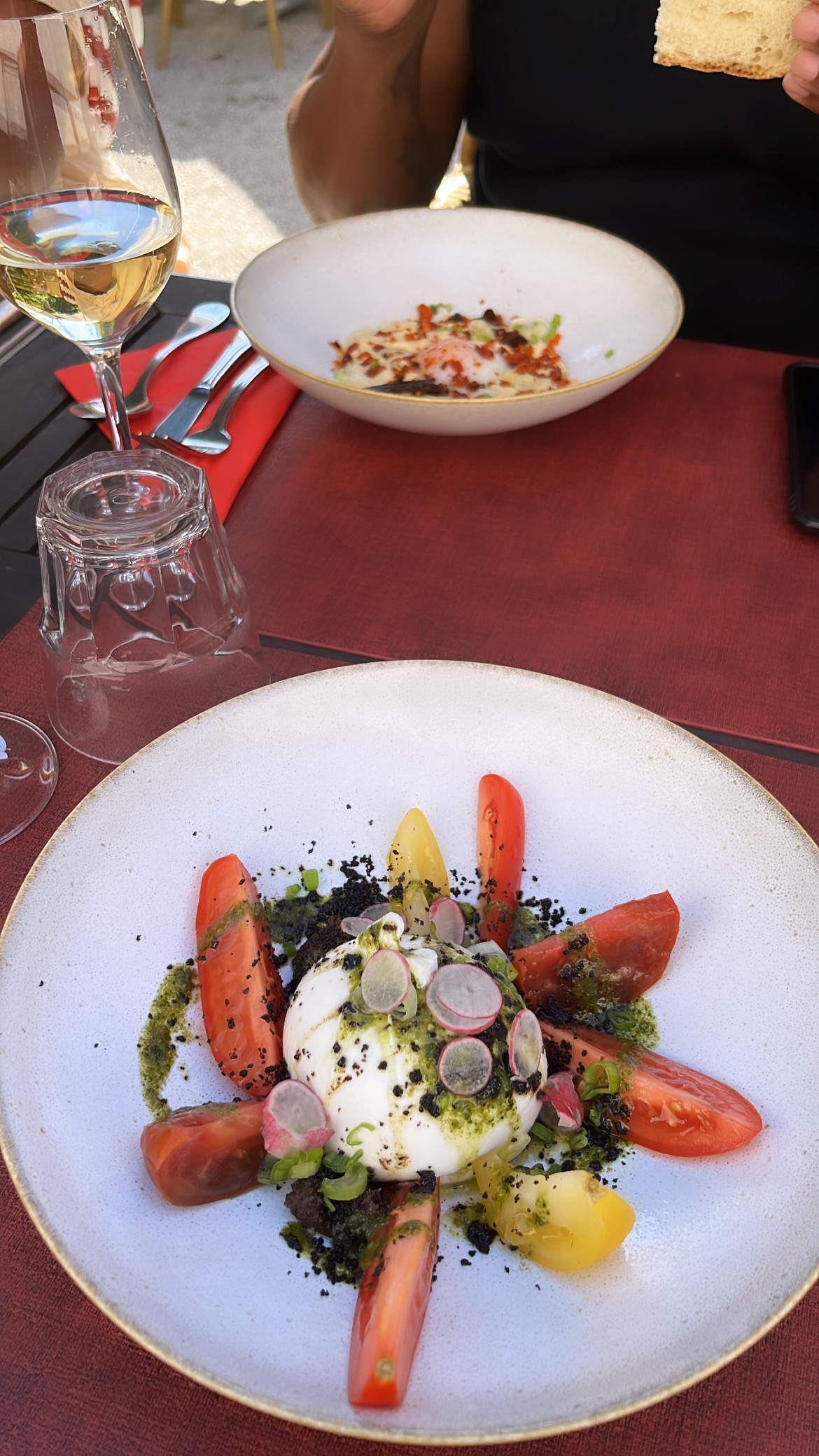 Le service est vraiment exceptionnel ! Nous n'étions pas satisfaits du démarreur, alors on nous a proposé de l'échanger. Très bien 👍 Malheureusement, la burrata n'était pas du tout notre tasse de thé. Nous savons que c'est plus crémeux - au moins c'était glacé - mais devrait être à température ambiante. J'ai trouvé sa langue picoter - un signe qu'elle n'allait plus bien. L'œuf parfait, cependant, était très savoureux. Tout comme le bœuf braisé, le goût est excellent ! Malheureusement, le poulet était trop assaisonné. Nous ne comprenons pas toutes les critiques positives et ne reviendrons pas ici