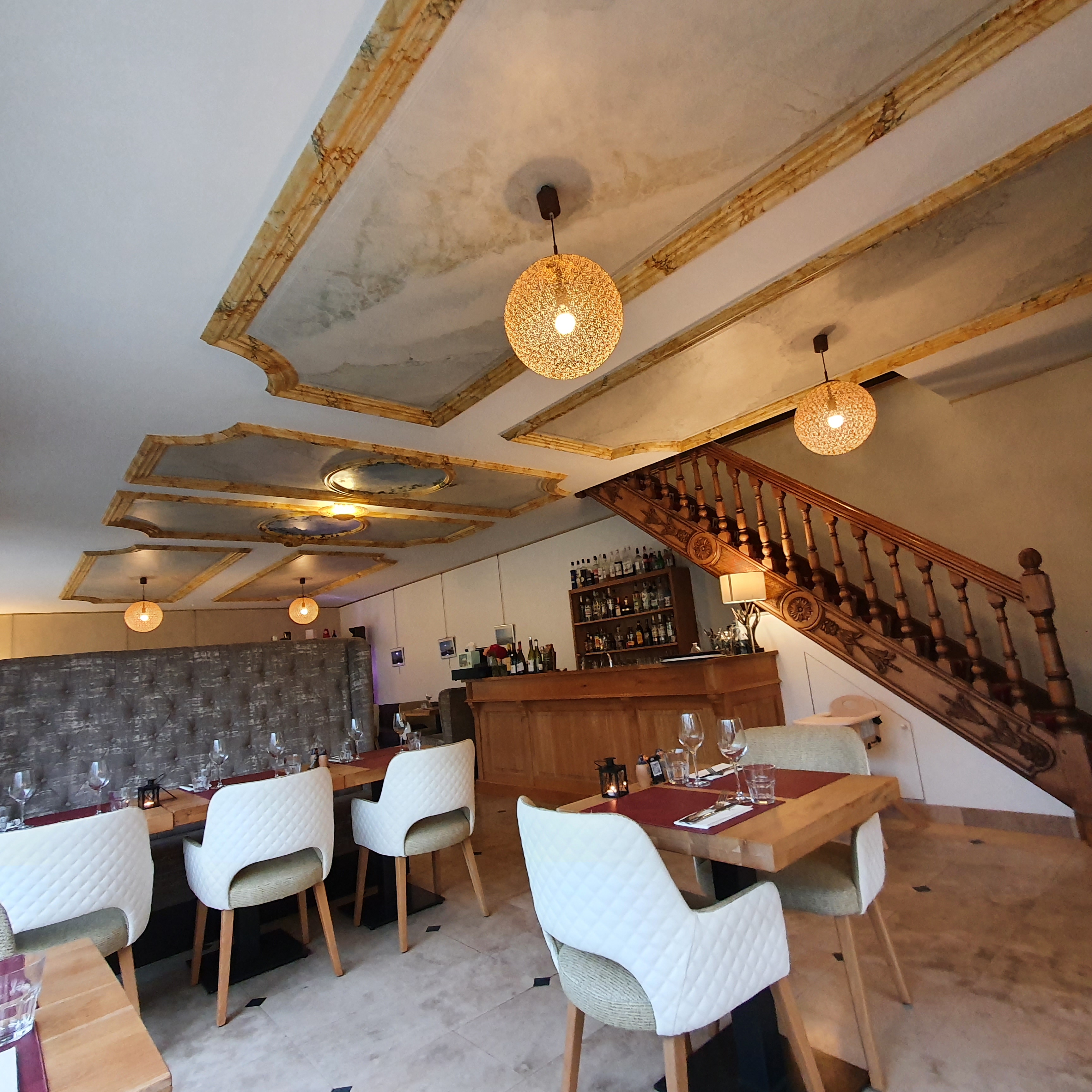 Restaurant et lieu à découvrir ! L'apéritif et le plat étaient très originaux, des associations de saveurs et textures intéressantes. Nous nous sommes régalés 😋 Le lieu est confortable et surprenant avec son plafond à fresque, l'ambiance y est douce et agréable. Le temps ne nous a pas permis de profiter d'une terrasse qui est tout aussi joliement arrangée et attrayante.