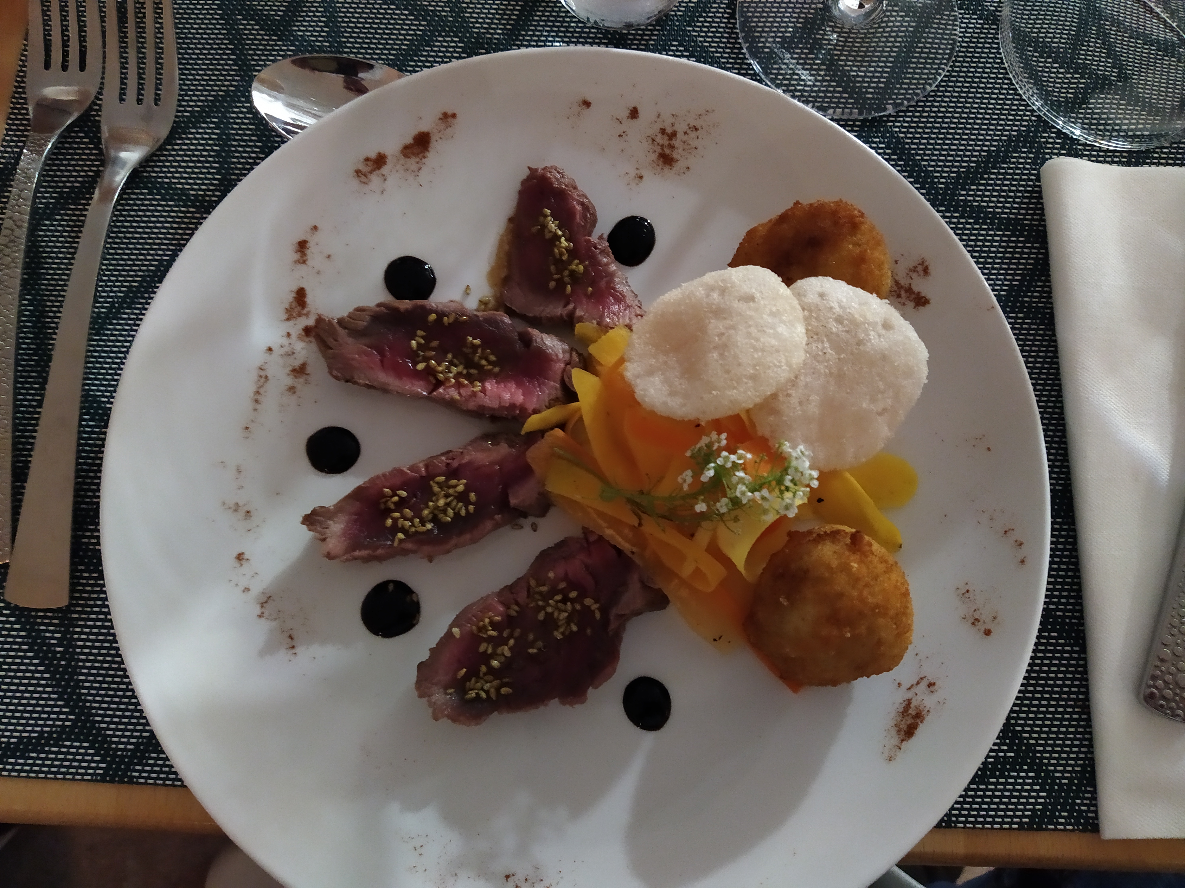 Une vue imprenable. Un restaurant assez calme, raffiné. Une carte qui propose 2 menus avec 2 ou 3 choix d'entrée, plat, dessert, ce qui laisse penser à des produits frais. J'ai moyennement apprécié le dessert mais le reste était très bien.