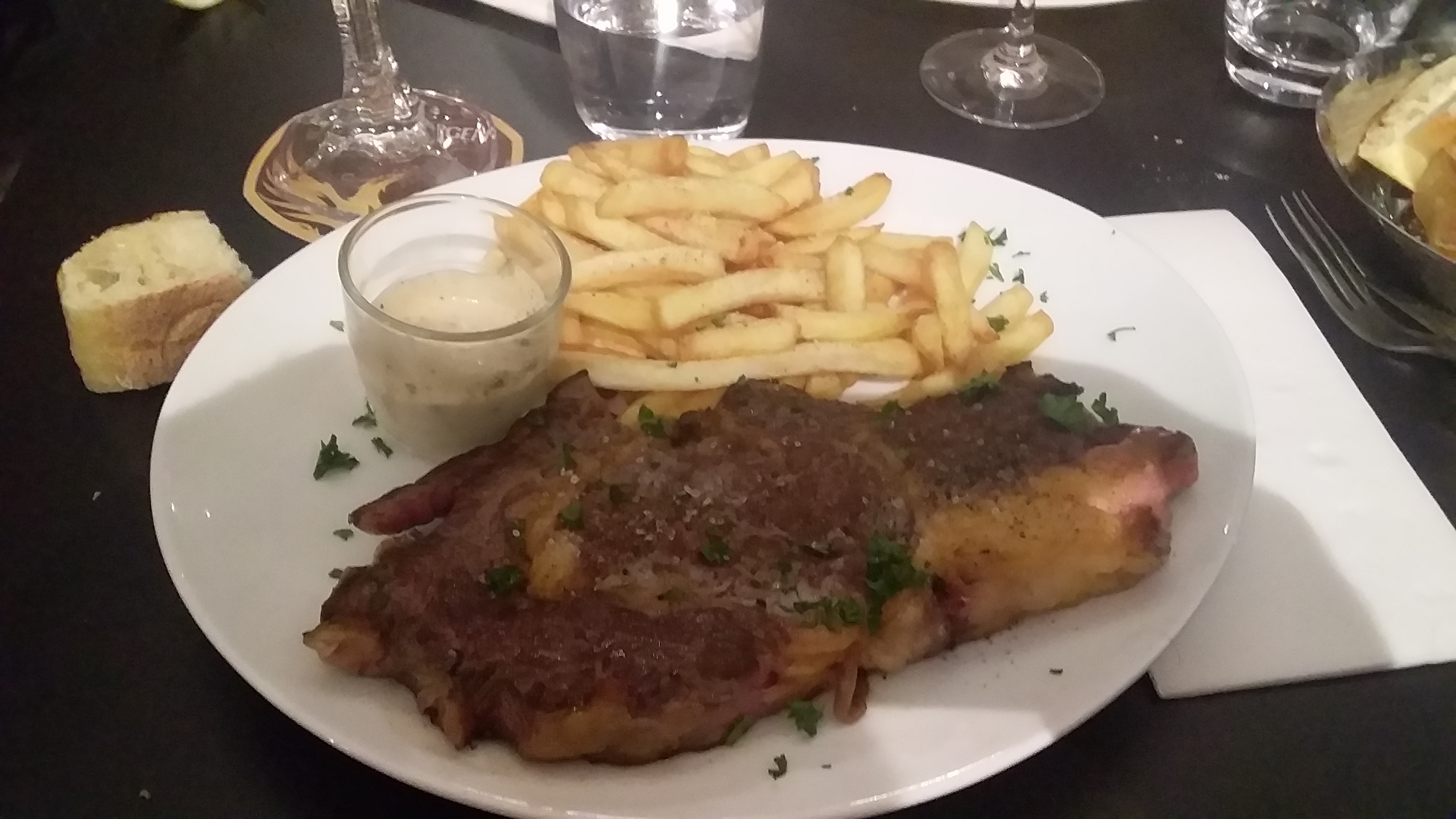 Nous n'avons pas mangé mais juste pris un verre. Un panaché : rien a dire...une pression grim fin de fût...pas de chance...pas de mousse....amis des chiens passez votre chemin si vous voulez le rafraîchir...pas de gamelle non plus. Même si vous avez de l'eau..on a pas testé si y avait une gamelle en commandant une Vittel...mais pouvez essayer..vous nous direz...