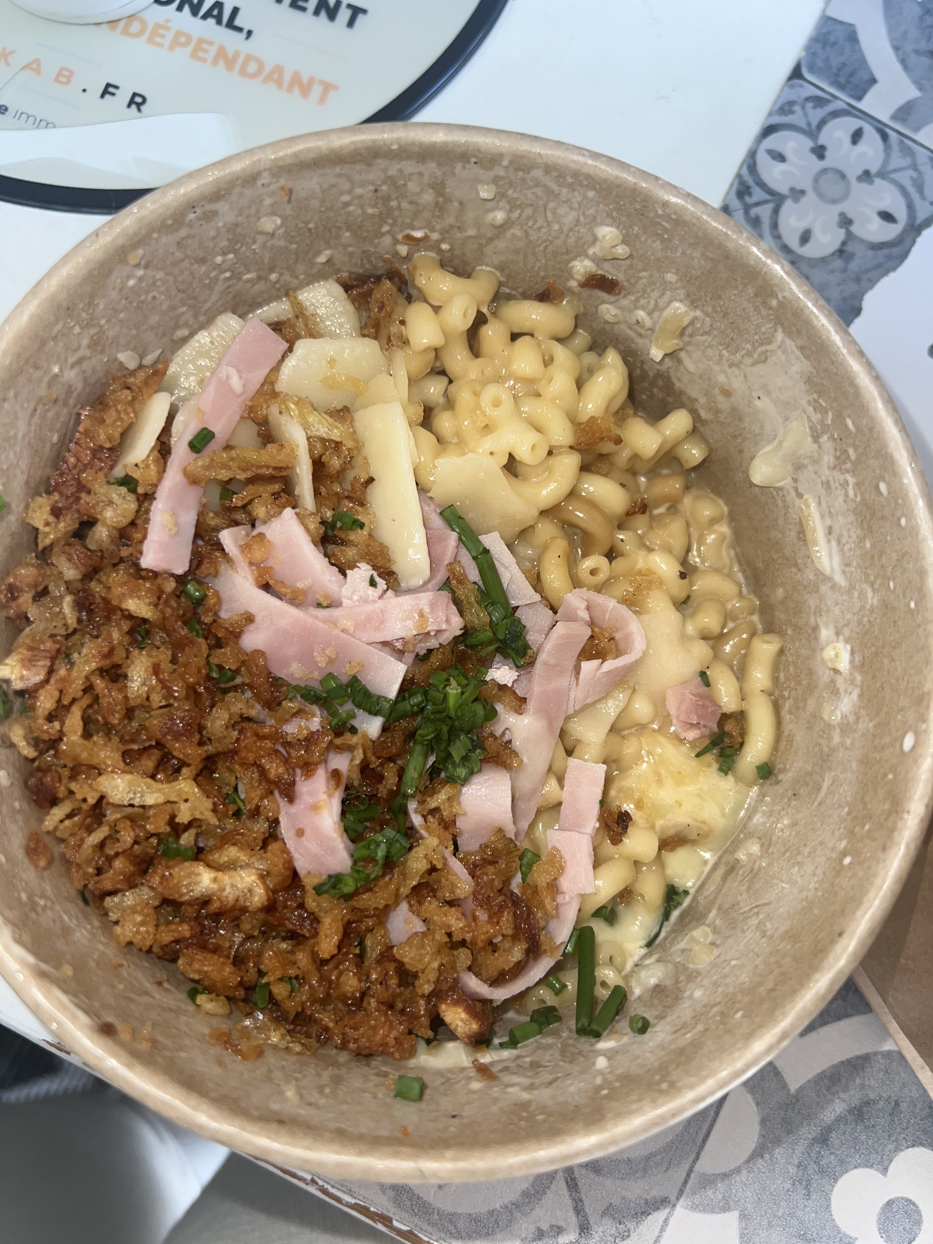J'avais déjà commander plusieurs fois les coquillettes et jamais déçu même si je trouve le prix un peu excessif pour des pâtes mais toujours des quantité généreuse donc ça va, nous avons donc décider de tester les burger un poulet et steak nous avons été tous les deux malade le lendemain c'était très cher et vraiment pas bon surtout le burger steak ! J'ai décider de réessayer avec le plat aligot saucisse, et salade la sauce de la salade je n'aime pas dutout je n'est pas pu la manger (sauce avec du fromage trop fort à mon goût) et je n'est JAMAIS manger un aligot aussi deg*** je suis presque dégoûter de l'aligot et je ne parle même pas de la saucisse je suis très déçus notament la quantité pour le prix c'est ridicule... Seul point positif de cette commande les ognions rings et le brownie de toute façon inratable puisque ce n'est pas cuisiner là-bas. Si je re-comande se sera uniquement pour les coquillettes