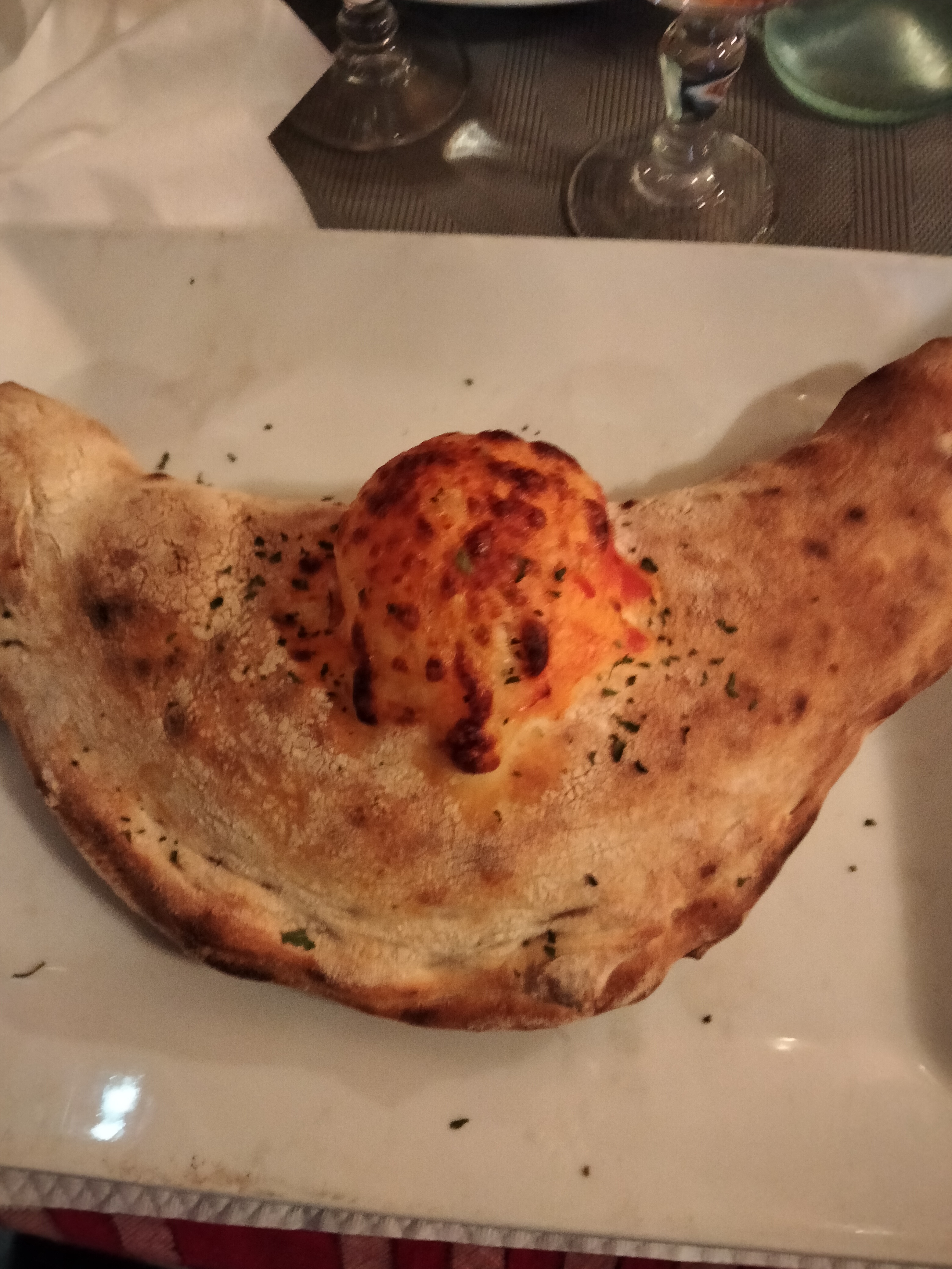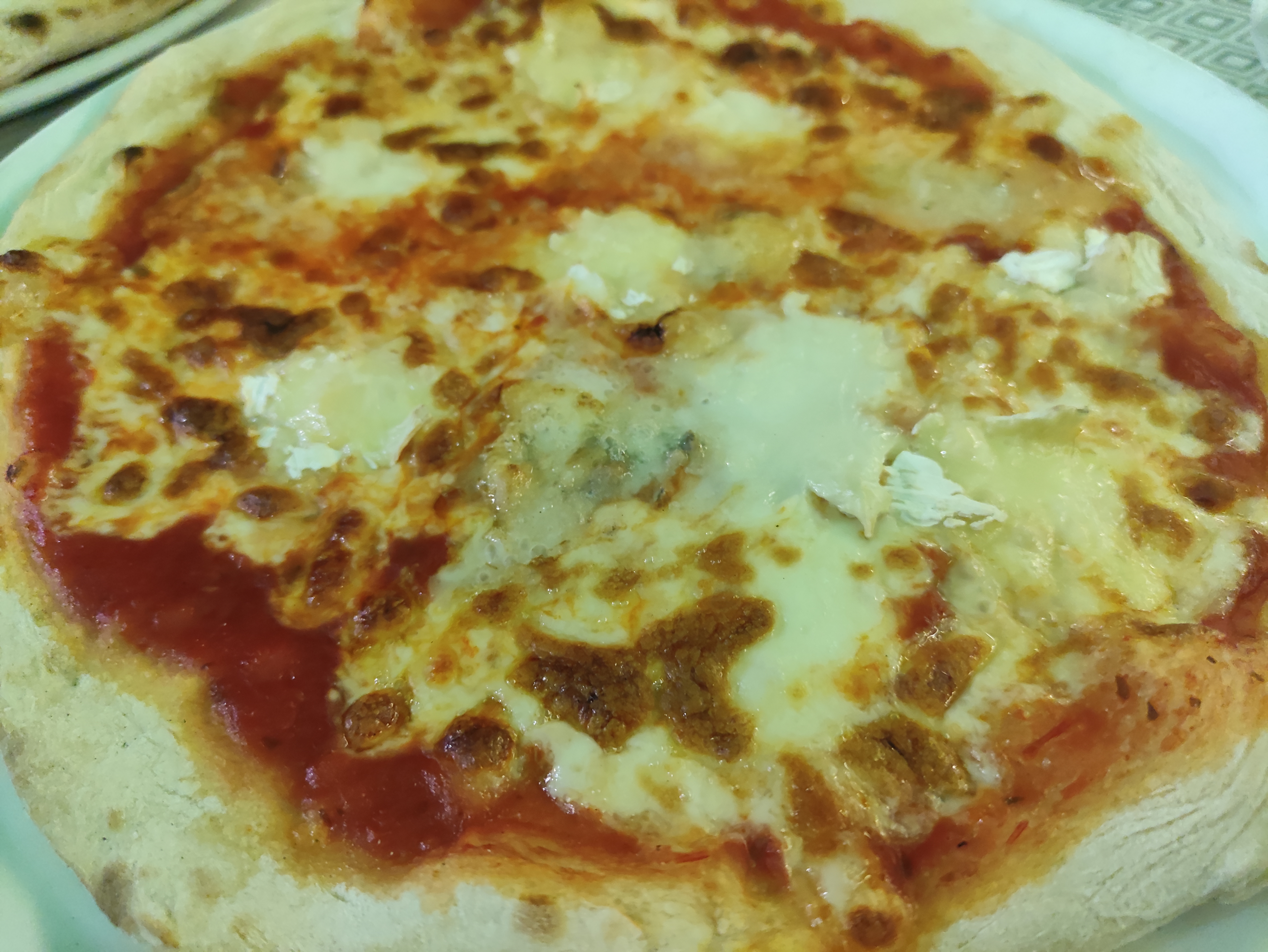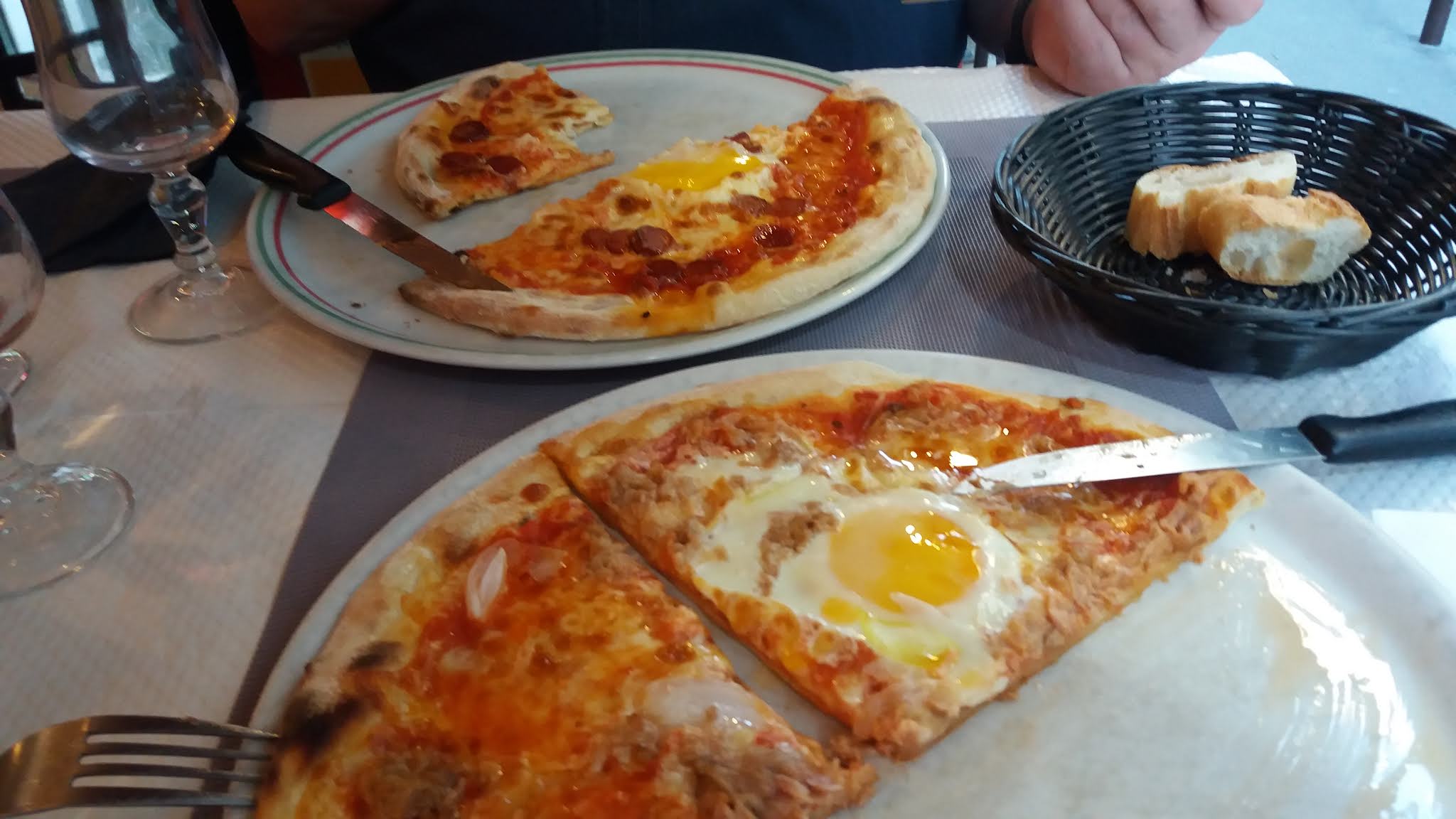 La première question du serveur fut : « D'où venez-vous ? puisqu'il a compris que nous étions des touristes et, par hasard, que nous avions dit un endroit au hasard. Dès l'arrivée des pizzas on comprend tout de suite qu'elles n'ont pas été fabriquées par eux, mais qu'elles ont été congelées et les croûtes sèches, la sauce sèche, la saveur complètement absente en étaient la preuve. De plus, une pizza surgelée ne coûte pas plus de 3 euros, surtout une margherita : ici le prix est passé comme par magie à 10 euros. Une véritable arnaque, seul l'environnement est légèrement sauvé