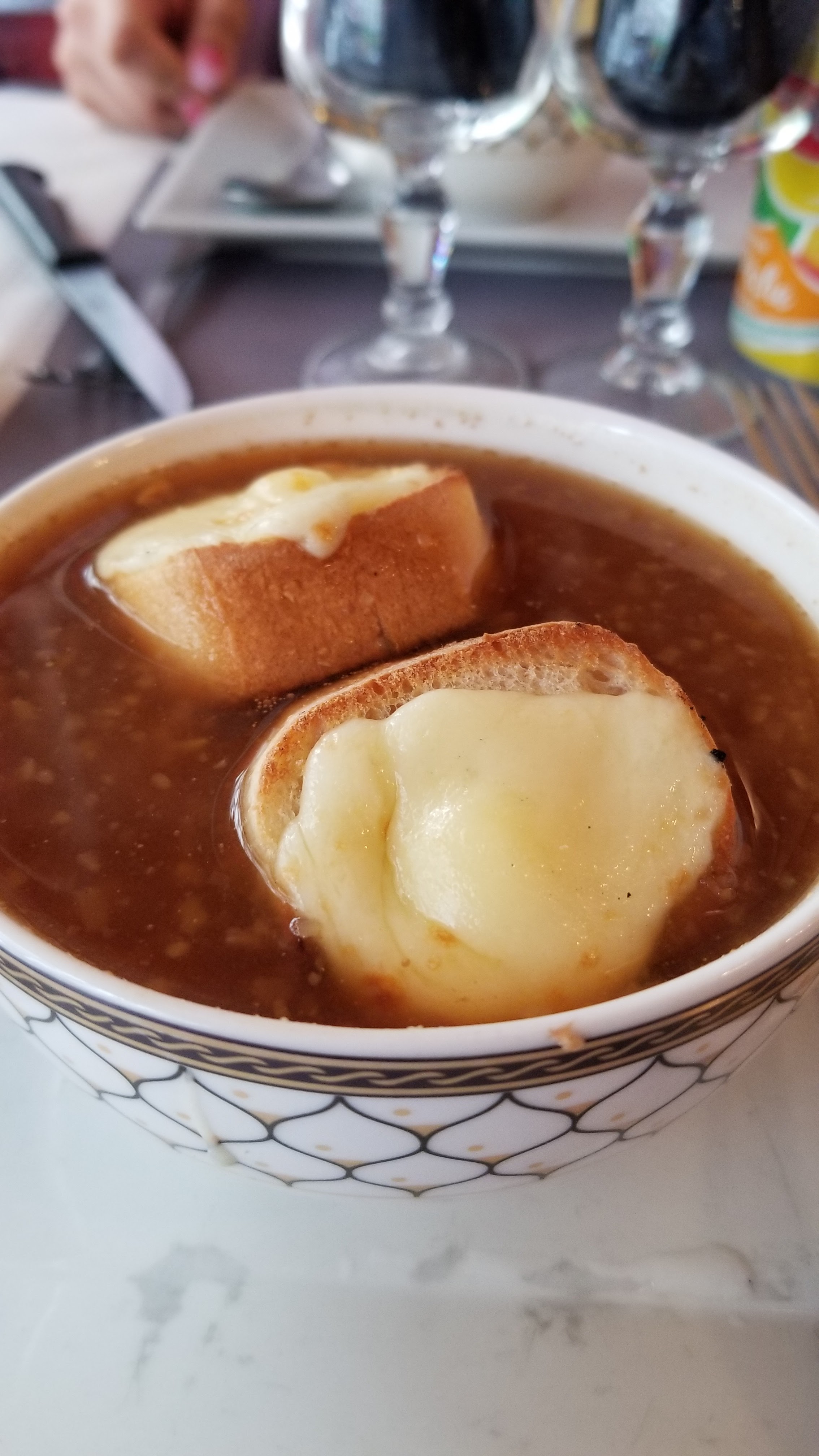 La soupe à l'oignon pourrait être meilleure, mais tout le reste était très bon. Portions grandes, service rapide