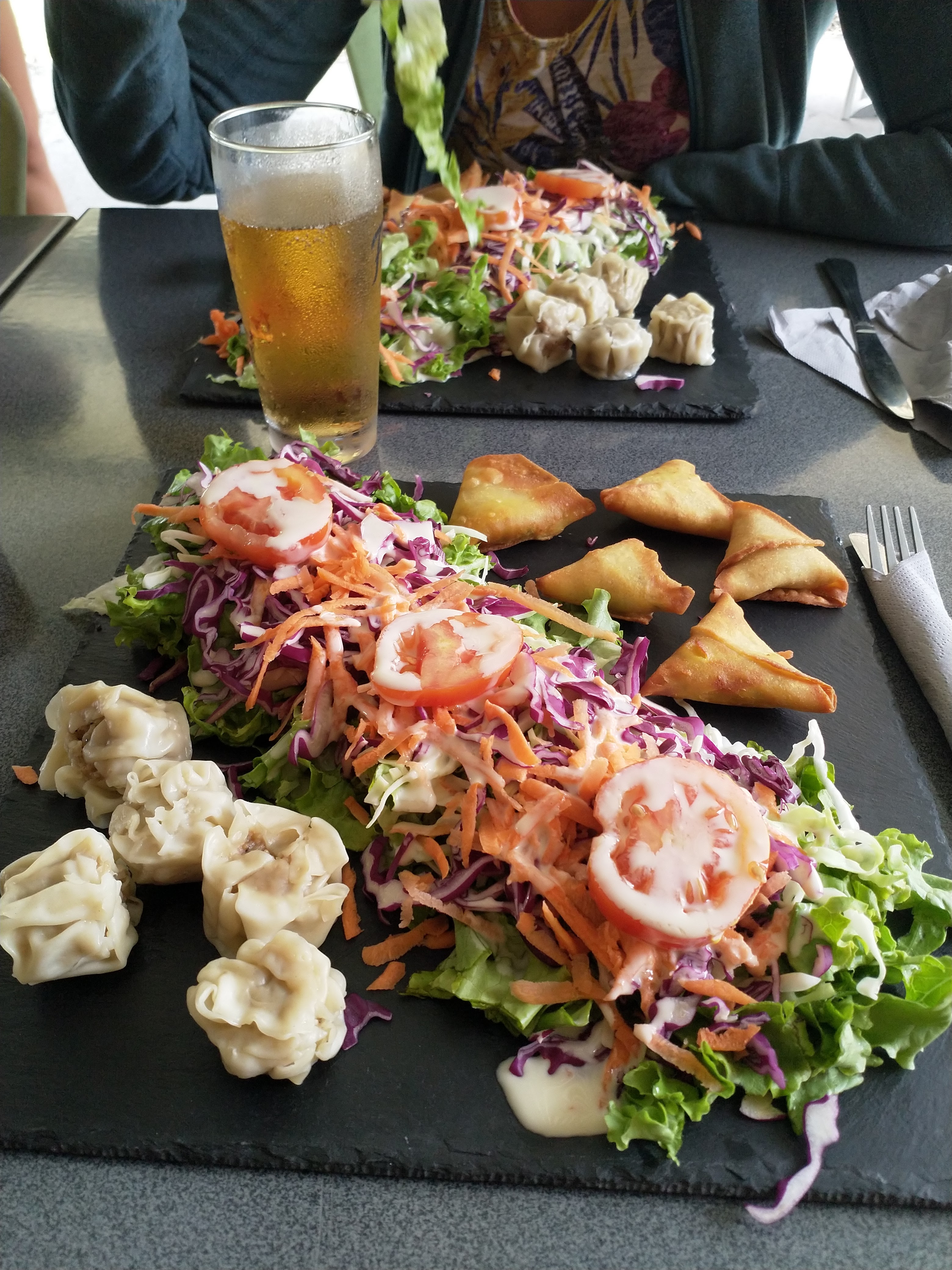 Superbe salade créole et j ai adoré le roumain saucisses aux aubergines ! Un bon petit fondant chocolat caramélisé pour finir, le tout pour moins de 40 E avec 2 boissons. Attablés dehors face aux remparts du cirque de Salazie. Le chaleureux accueil en plus ! Encore merci et à bientôt :)
