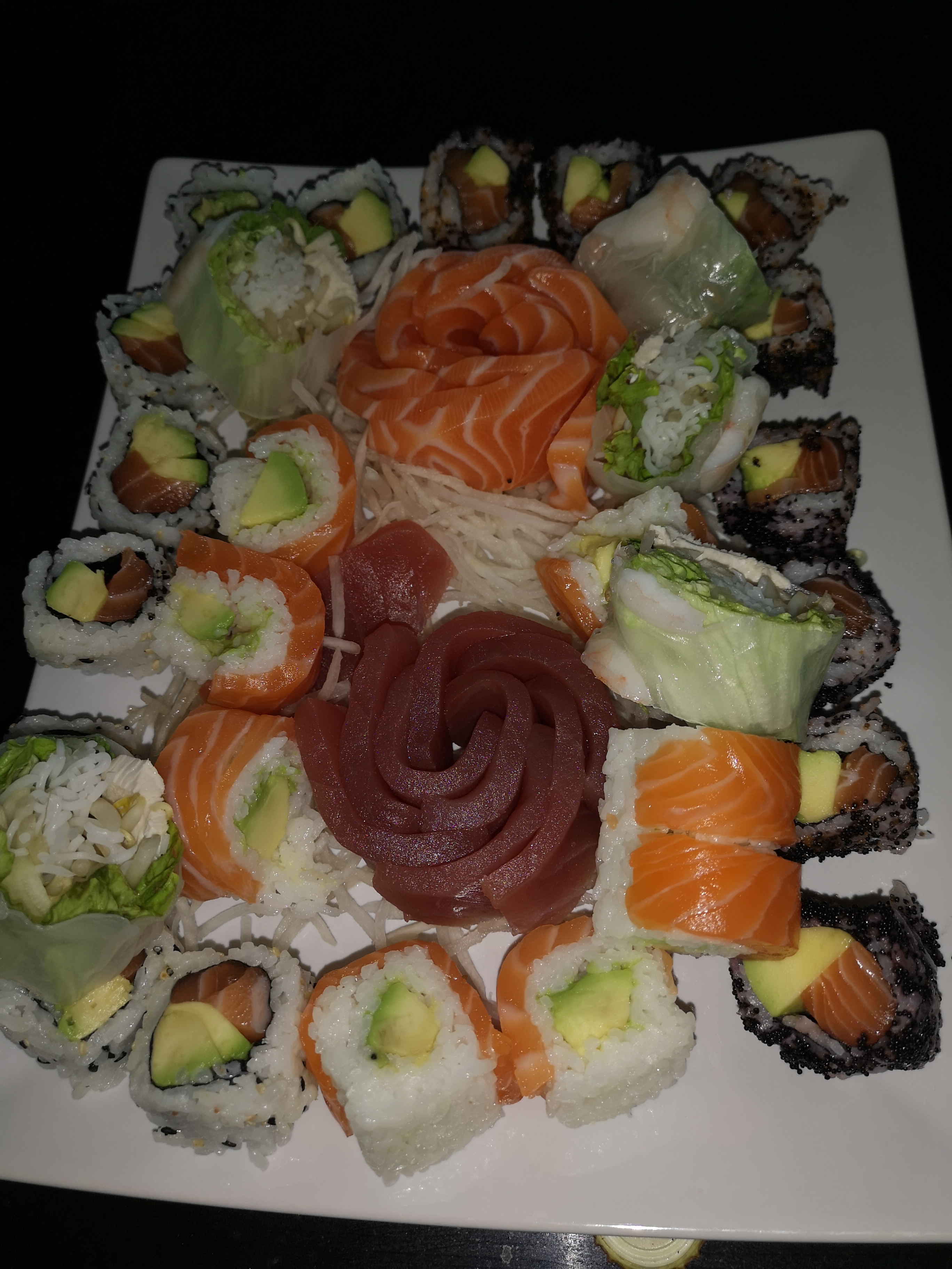 bons sushis, service de livraison sur une vaste zone en plus( à partir de 48 euros). Nous allons encore commander chez eux c'est certain.Il faudrait juste essayer d'innover un peu sur la carte pour atteindre l'excellence.