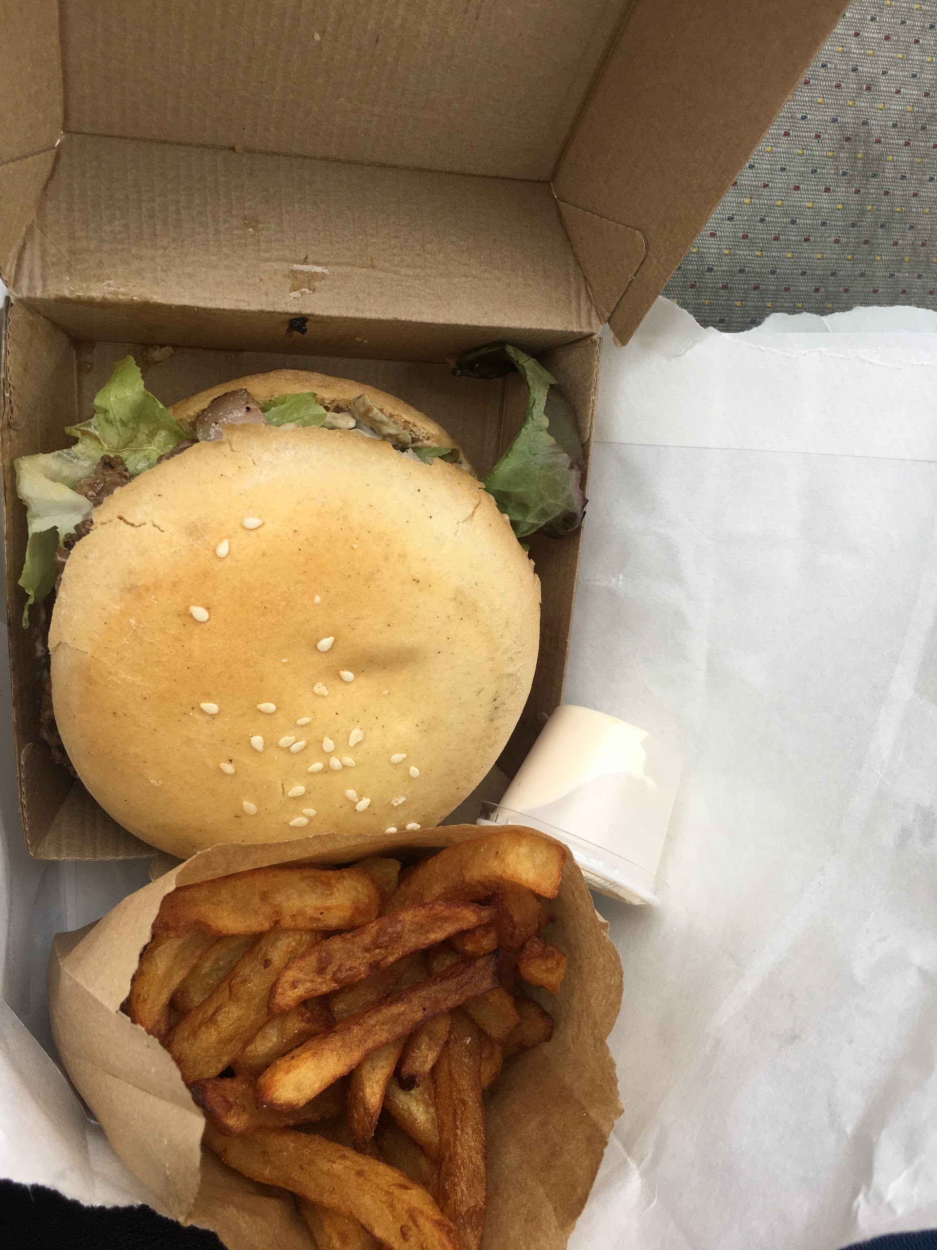 Parfait, vraiment très bon, hamburgers avec des produits frais, frites fraiches maison , pas d'attente. Vous pouvez manger sur place.