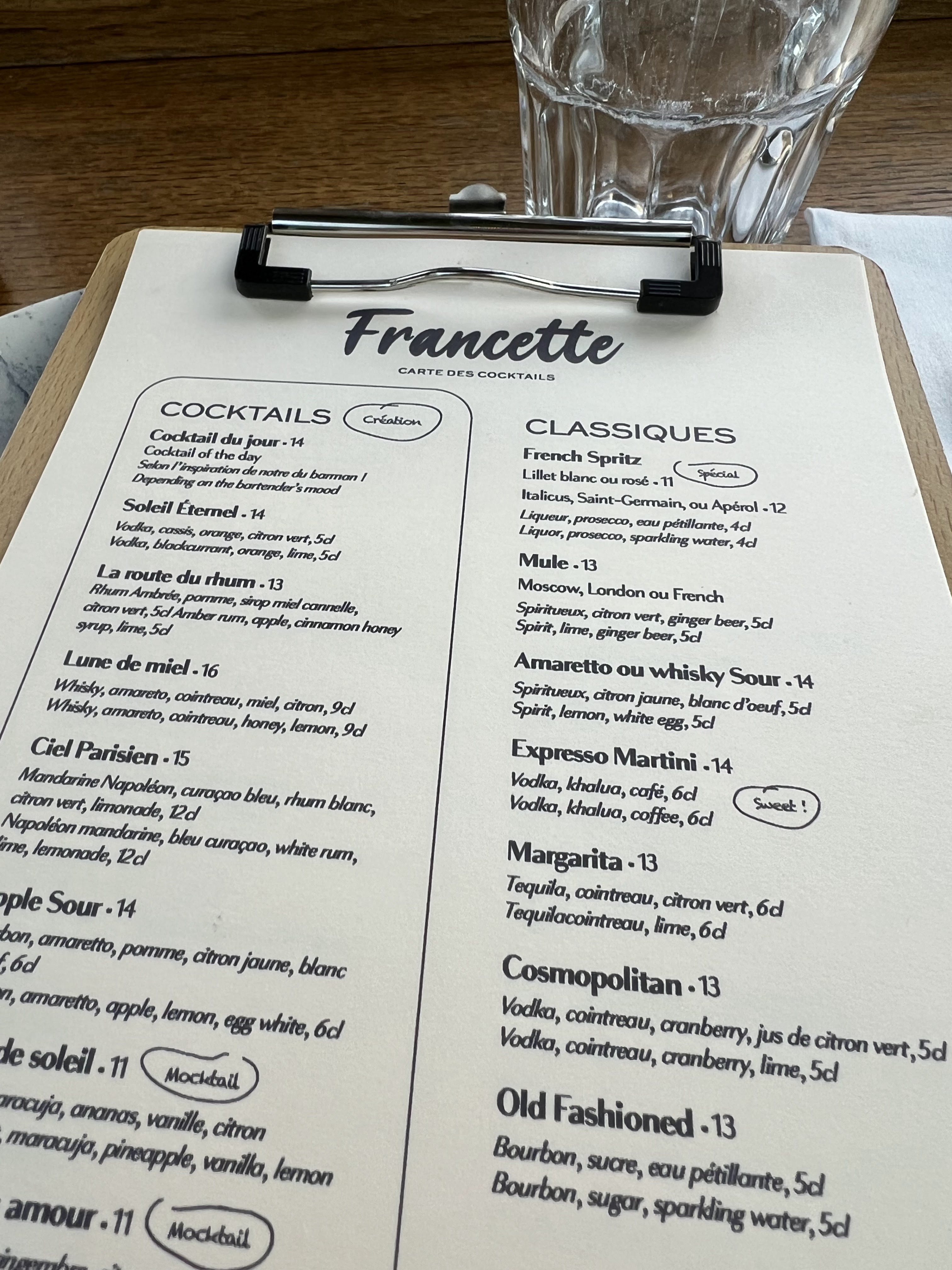 - ✔️ Cocktails et apéritifs