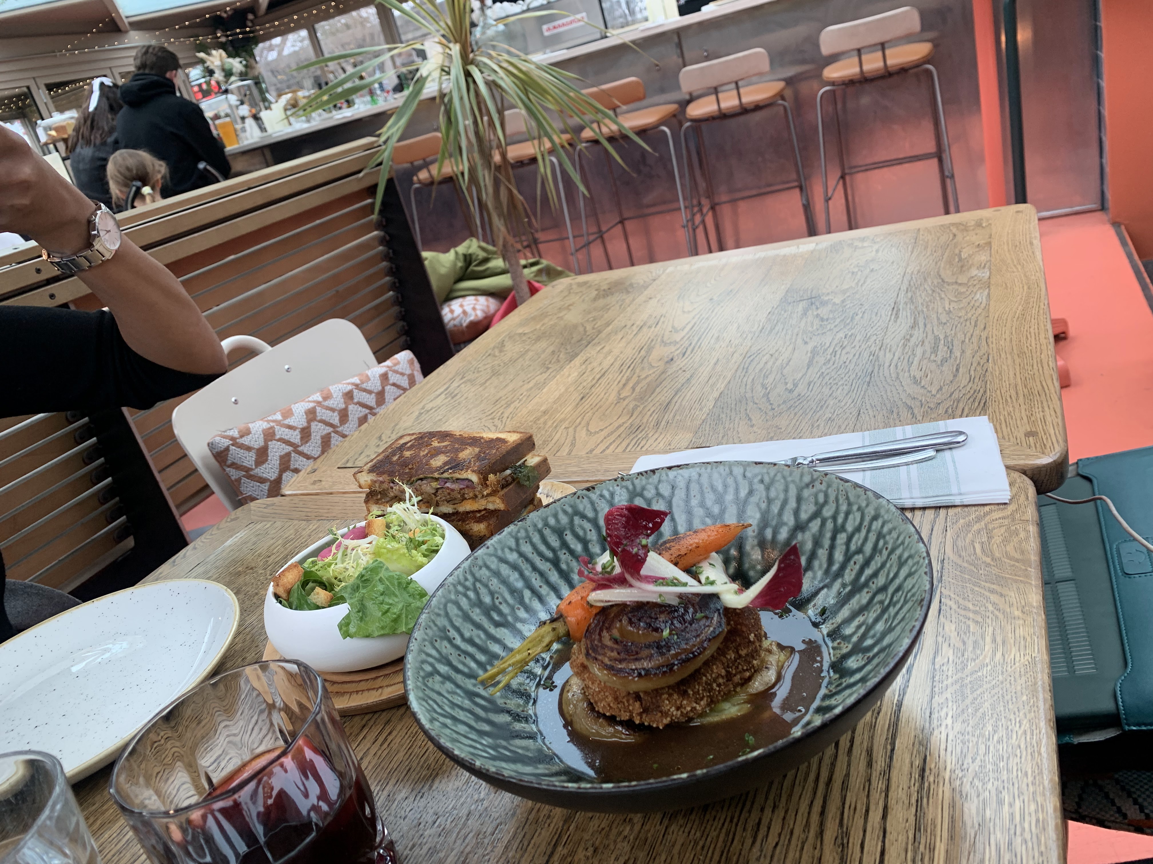 Meilleure expérience culinaire! J'ai apprécié l'ambiance ! Juste à côté de la Tour Eiffel et au bord du lac. Mon ami et moi avions : Boeuf bourguignon, Croque de Canard Et du vin chaud. C'était tellement délicieux. Très très savoureux ! Je recommande vivement cet endroit !!