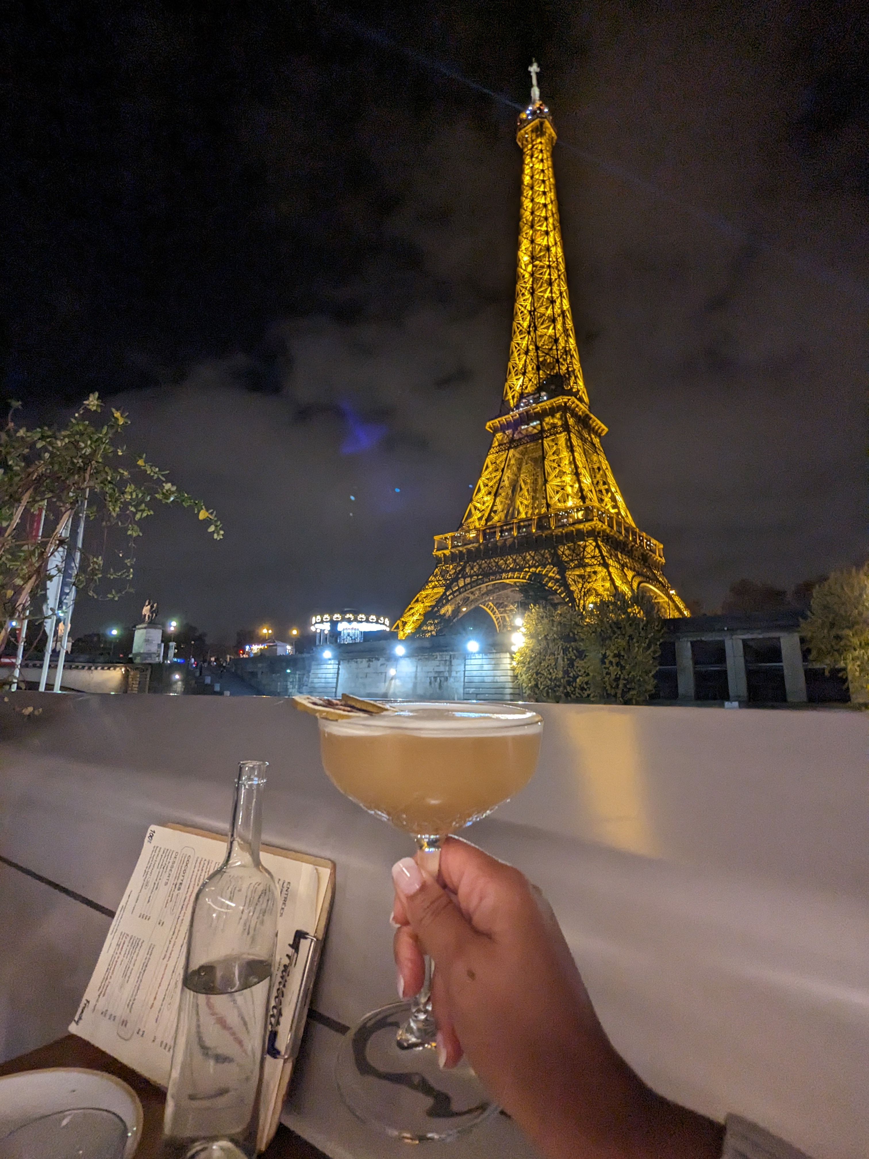 Une expérience au top, un rapport qualité/prix excellent, les plats sont travaillés et gustativement incroyables. Le cadre est sublime avec une vue sur la Tour Eiffel depuis la terrasse extérieure mais aussi depuis l’intérieur. Un service plus que qualitatif… J’y retournerai pour tester la cave se trouvant dans la cale du bateau !