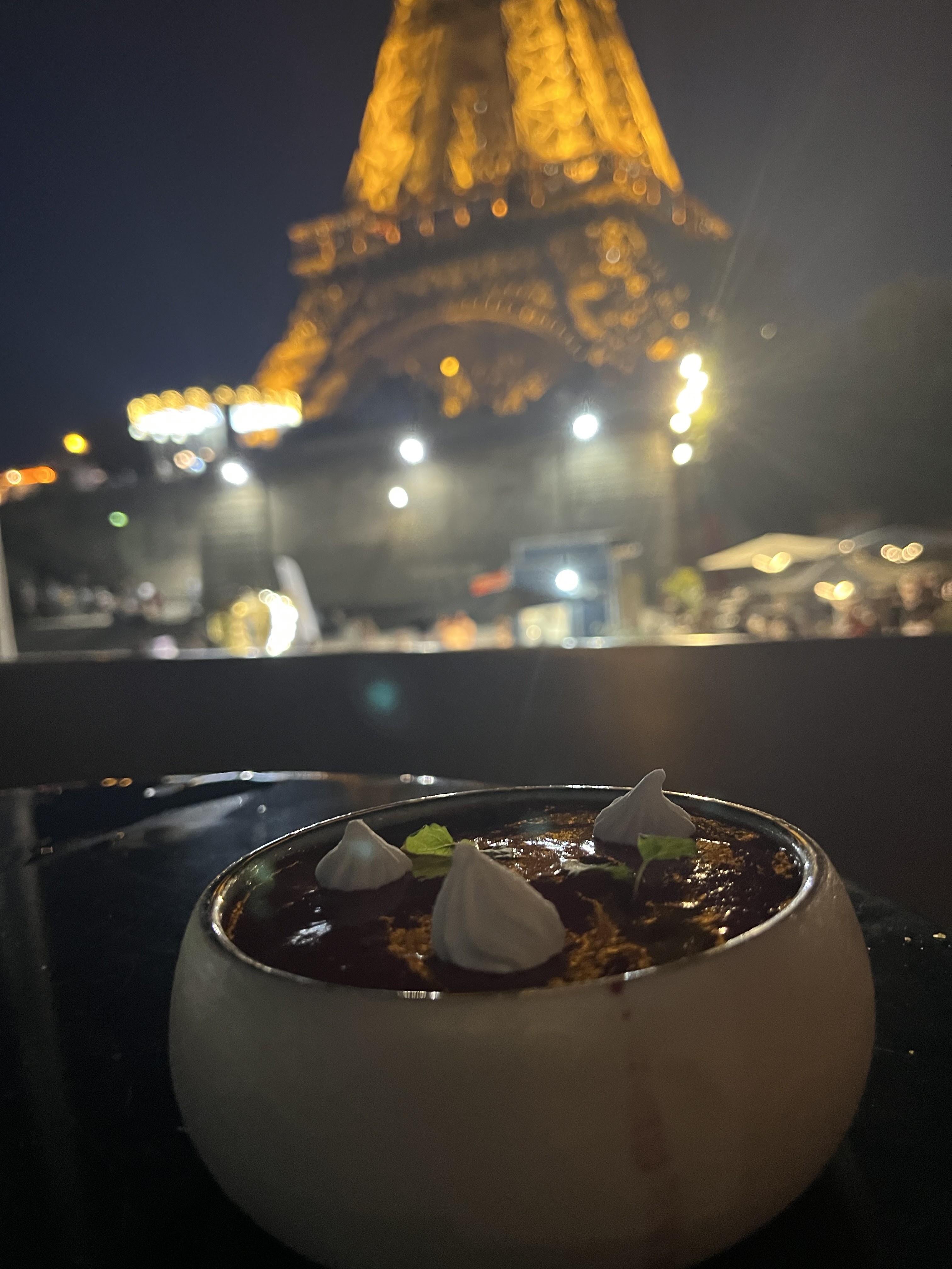 J'ai réservé ce restaurant sans m'attendre à grand chose de la nourriture, mais plutôt à l'ambiance. Le personnel était sympathique et la nourriture était bonne, mais pas géniale. Mais je me suis bien amusé ! J'ai pu regarder la Tour Eiffel scintiller à la fin de mon dîner, ce qui a été une expérience incroyable. Mon steak était juste correct. Je n'ai pas apprécié les frites et la saveur du steak mais ce n'était pas très tendre. Les desserts étaient bons mais rien d'extraordinaire. Dans l'ensemble, j'y retournerais probablement pour la vue et l'atmosphère. J'ai vraiment apprécié mon dîner ici!