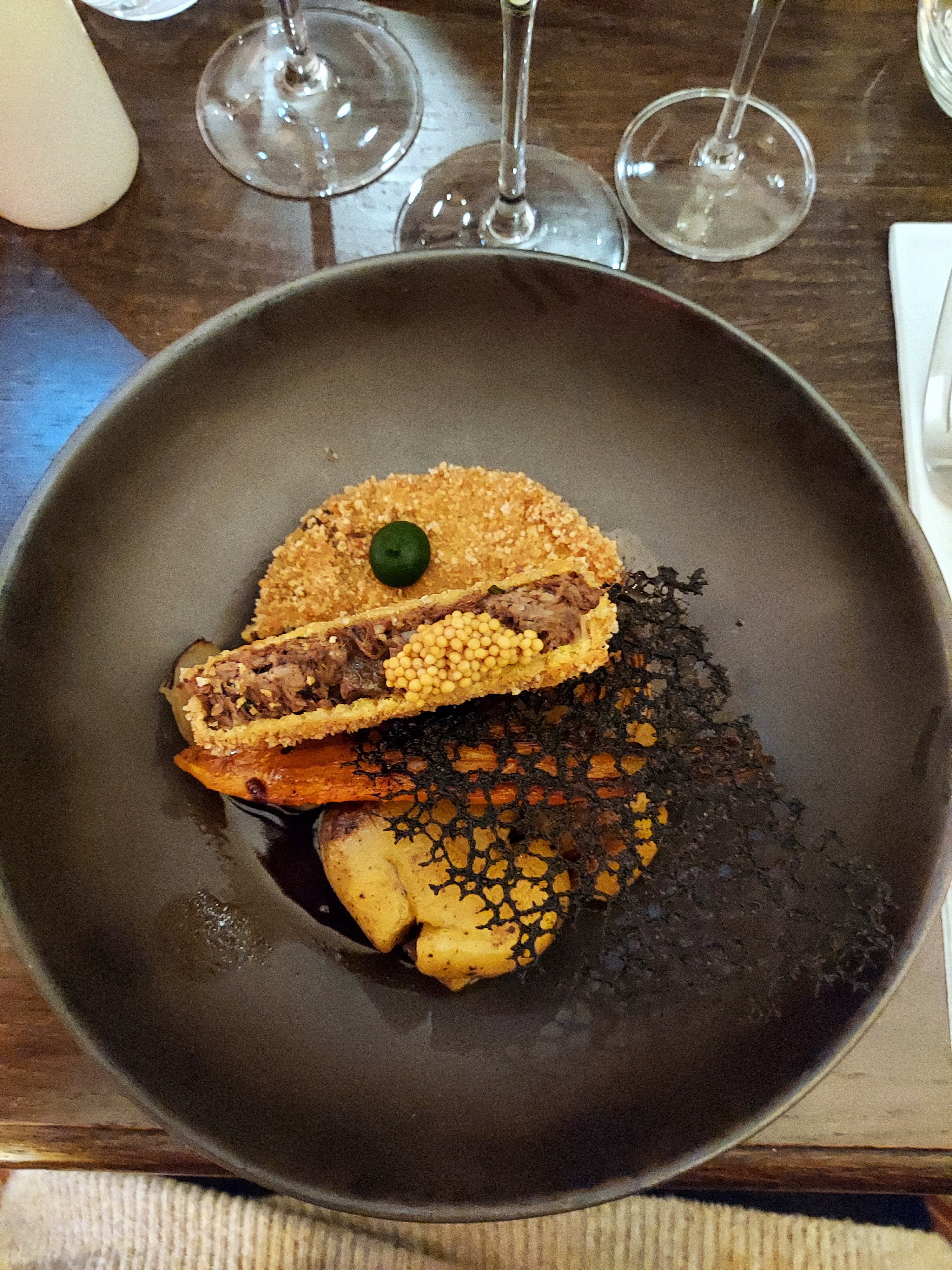belle expérience, nourriture excellente, nous avons eu un menu dégustation de cinq plats, un excellent service et une vue magnifique.
