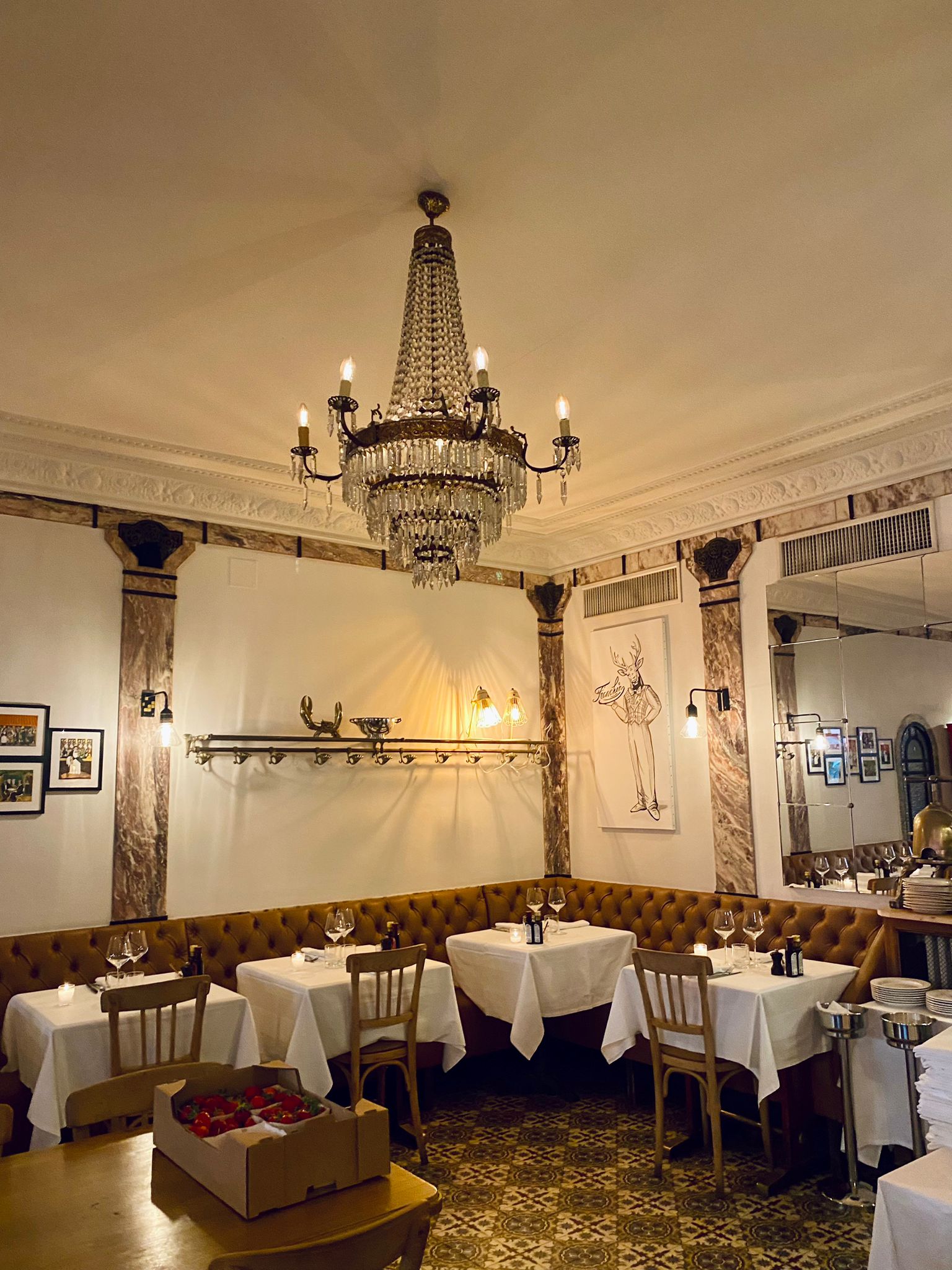 Très bel restaurant, une ambiance hors du commun d'un classicisme rare. Quelques defaillance de décor (comme l'insertion de certains meubles hors style et gout) ne font pas défigurer un lieu délicieux décoré avec des marbres italiens et fer forgé du début du 1900. Les plats étaient parfaitement preparées, en quantité suffisante et présentés avec soin. Le service était attentif et amical. Une excellente expérience que nous recommandons à ceux qui recherchent une ambiance classique d'excellente qualité.