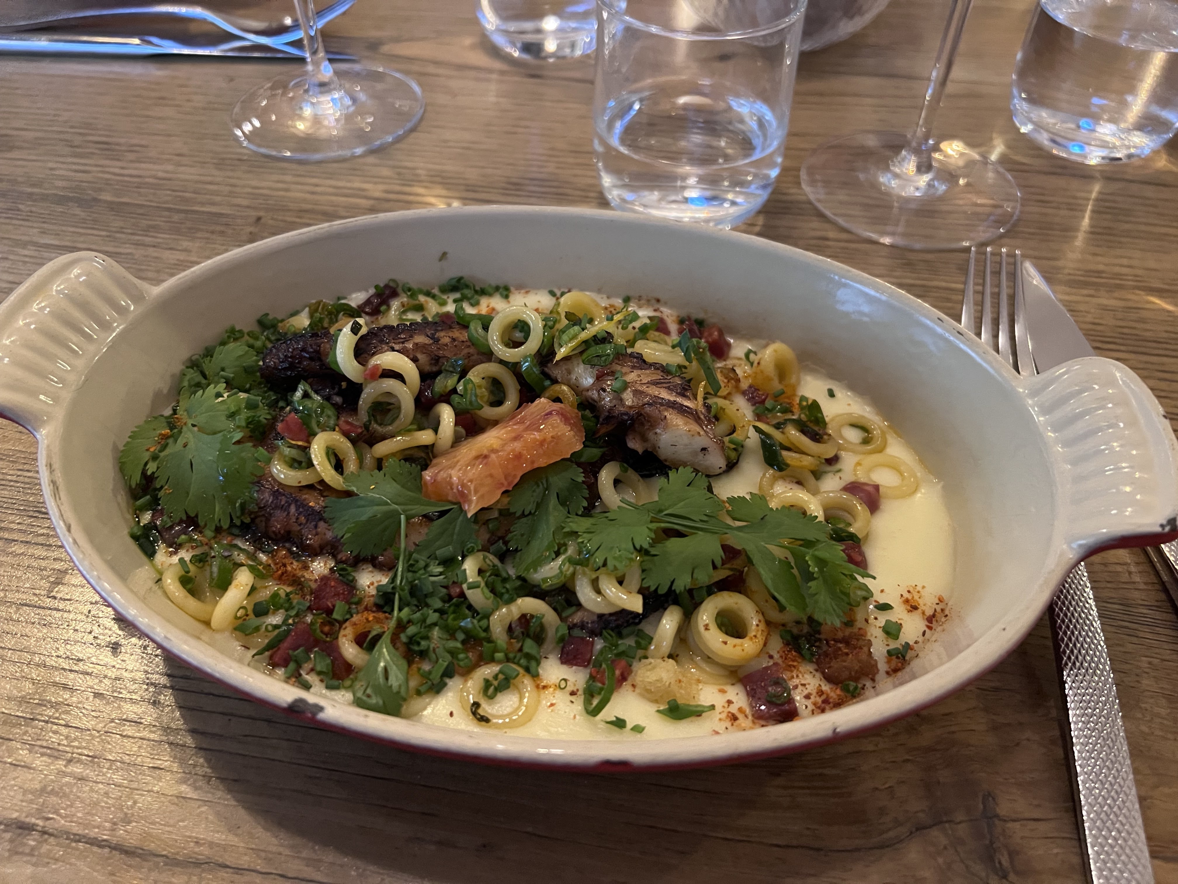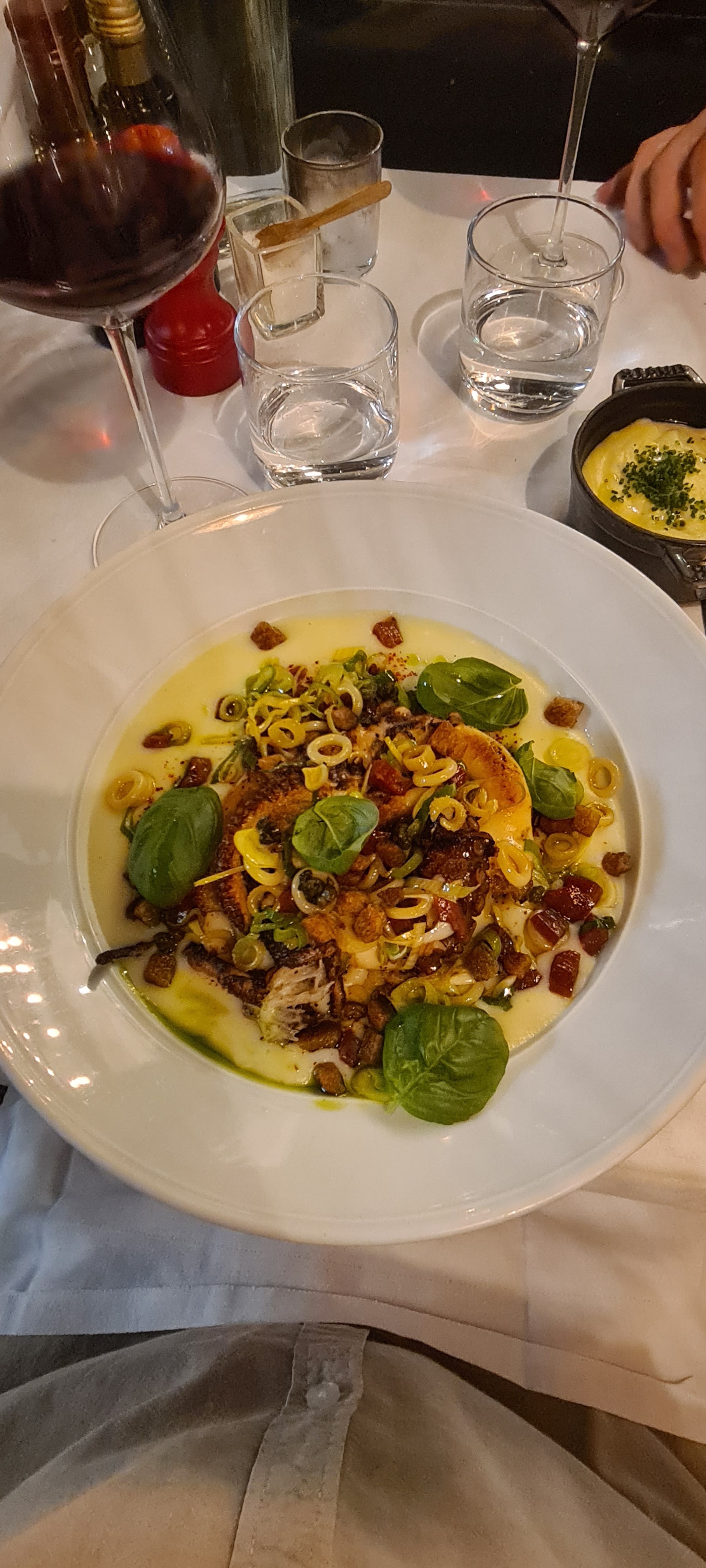 Joli restaurant, calme et cosy. Mon plat était vraiment bien cuisiné (j'adore le poulpe). Les attentions lors du service m'ont fait passer un très bon moment.