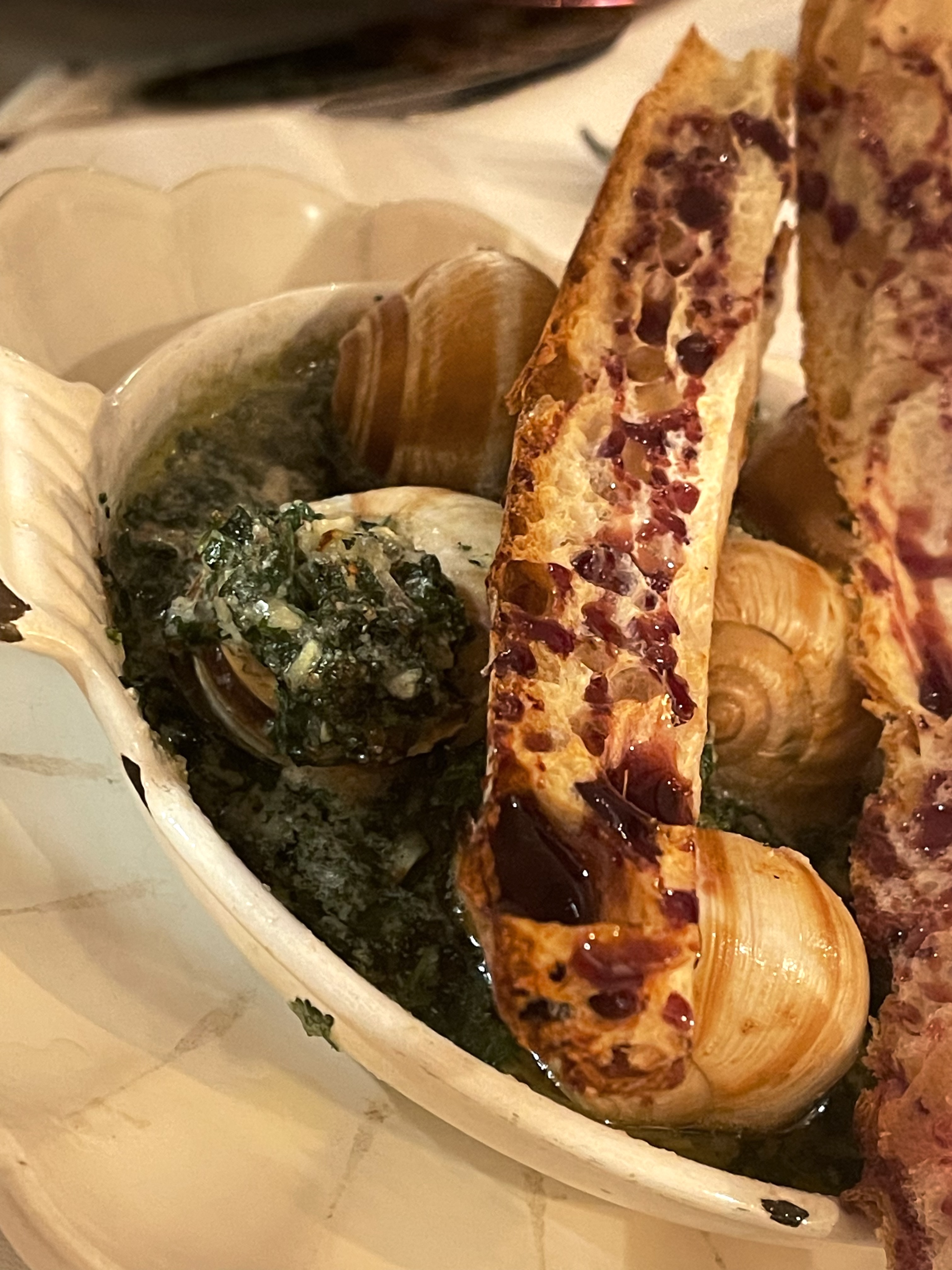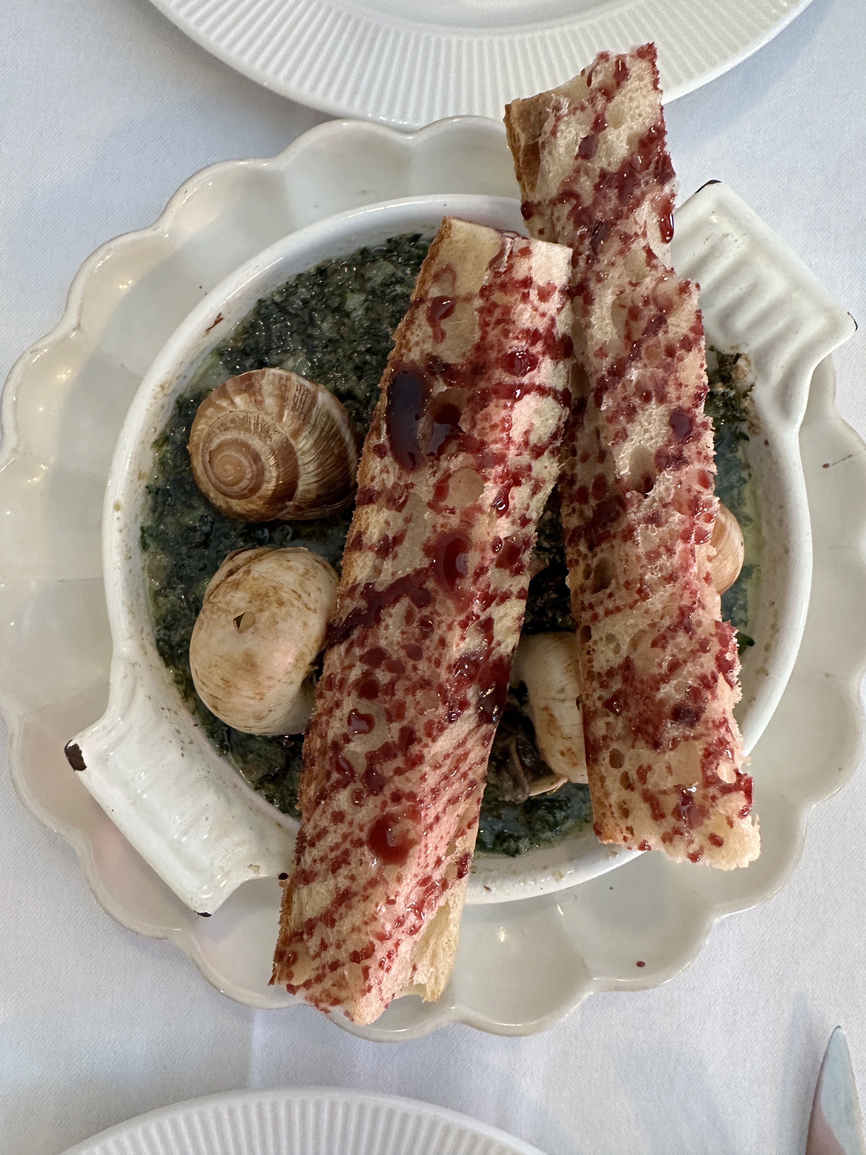 J'ai adoré les escargots, le pain avec de la confiture était cerise sur le dessus, un très bon ajout au plat. Les boulettes de viande étaient également savoureuses, cuites à la perfection. Le service était génial, attentionné et sympathique. Entrez pour le déjeuner, vous vous êtes rapidement assis et vous avez reçu un menu. Je pense qu'ils possèdent aussi un chien mignon ici, un endroit adorable. Si vous êtes dans le coin, essayez cet endroit !