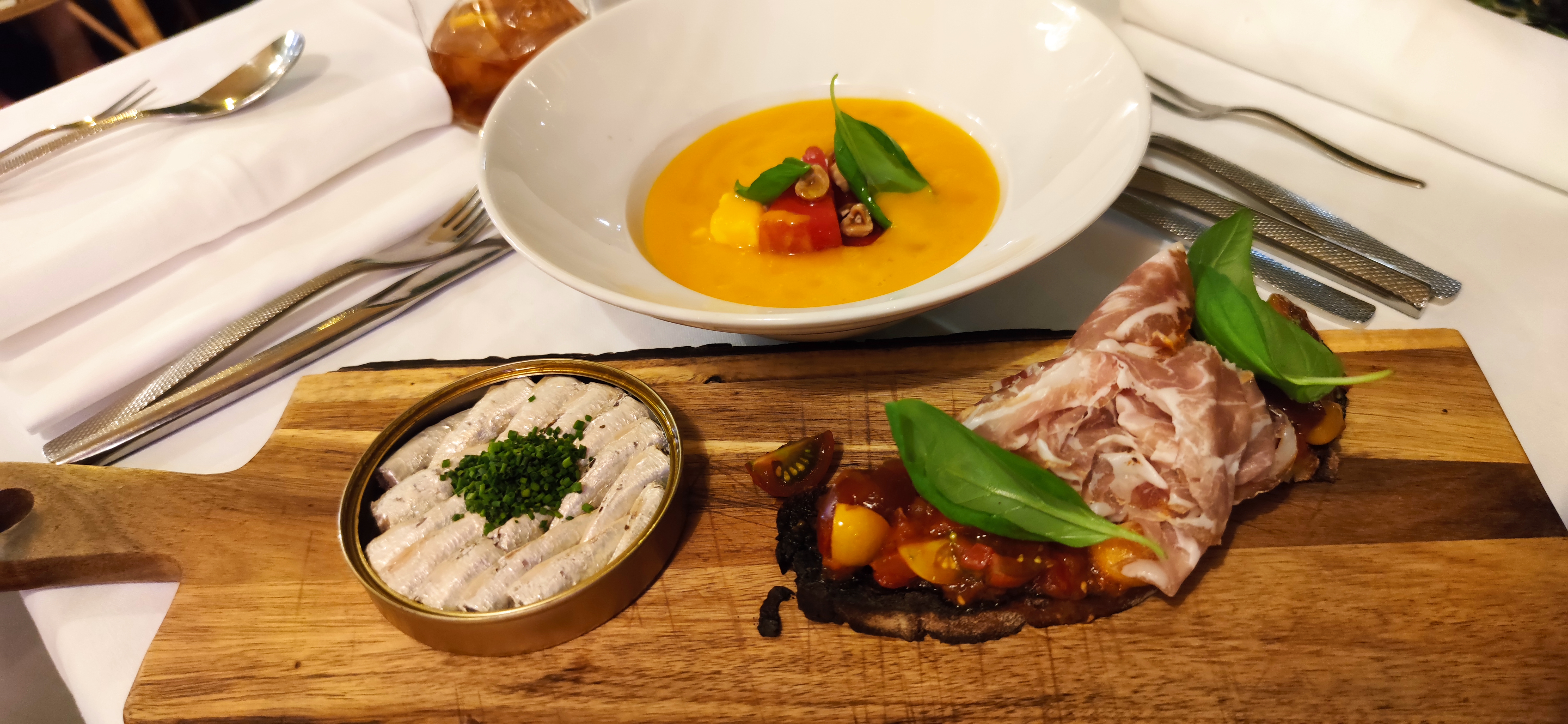 En général, c'était charmant, je donnerais 4 étoiles au lieu de 2, mais il y avait plusieurs mais. Quand nous sommes arrivés, la serveuse n'a pas eu le temps de nous placer, alors nous sommes restés assez longtemps et l'avons attendue, plus tard elle ne nous a pas donné de menu, sur nos demandes, nous avons entendu J'arrive... Nous avons changé de table. en demandant à un autre serveur, il a donc été très réactif - une histoire totalement différente ! Le dîner était délicieux sauf l'assiette de poulpe. C'était super rôti (le poulpe lui-même et tous les légumes), je ne l'ai pas mangé du tout. Le serveur nous a donné des excuses, mais ce n'était pas de sa faute :)