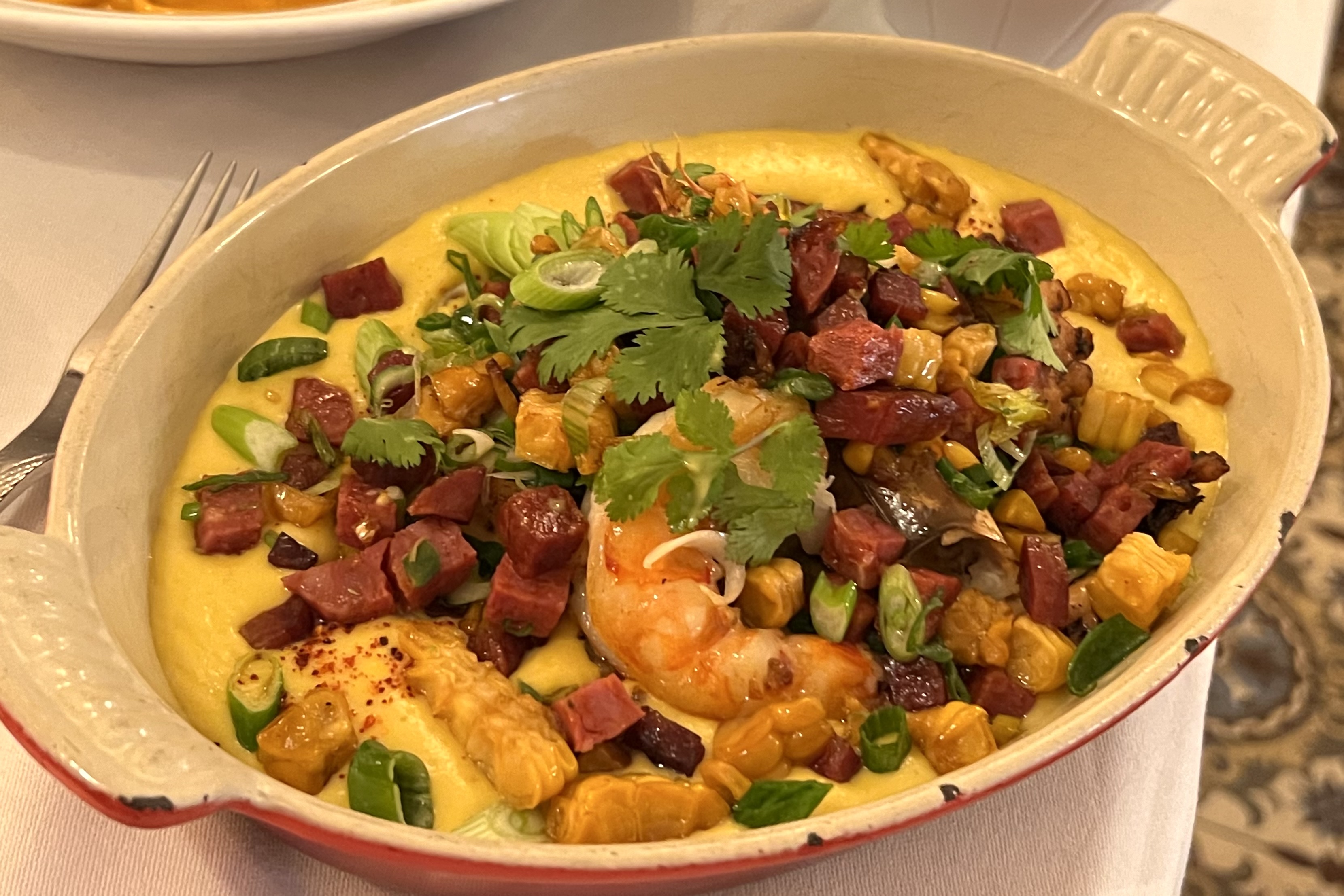 Prestation 5/5. Ils ont un menu anglais. Personnel adorable et très patient. Les plats sortent très vite et la température est parfaite. Pas trop chaud. 5/5 pour le goût des aliments Sauces très savoureuses, riches et crémeuses. Surtout la pieuvre. La douceur du maïs relève la fraîcheur du poulpe. Et la saveur savoureuse équilibrait les goûts du maïs. Le homard est bien cuit. Tendre et juteux. 3/5 pour la valeur. Ce n'est pas bon marché. Deux plats environ 130 €. 5/5 pour l'ambiance. Décorations cosy, chaleureuses et classiques.
