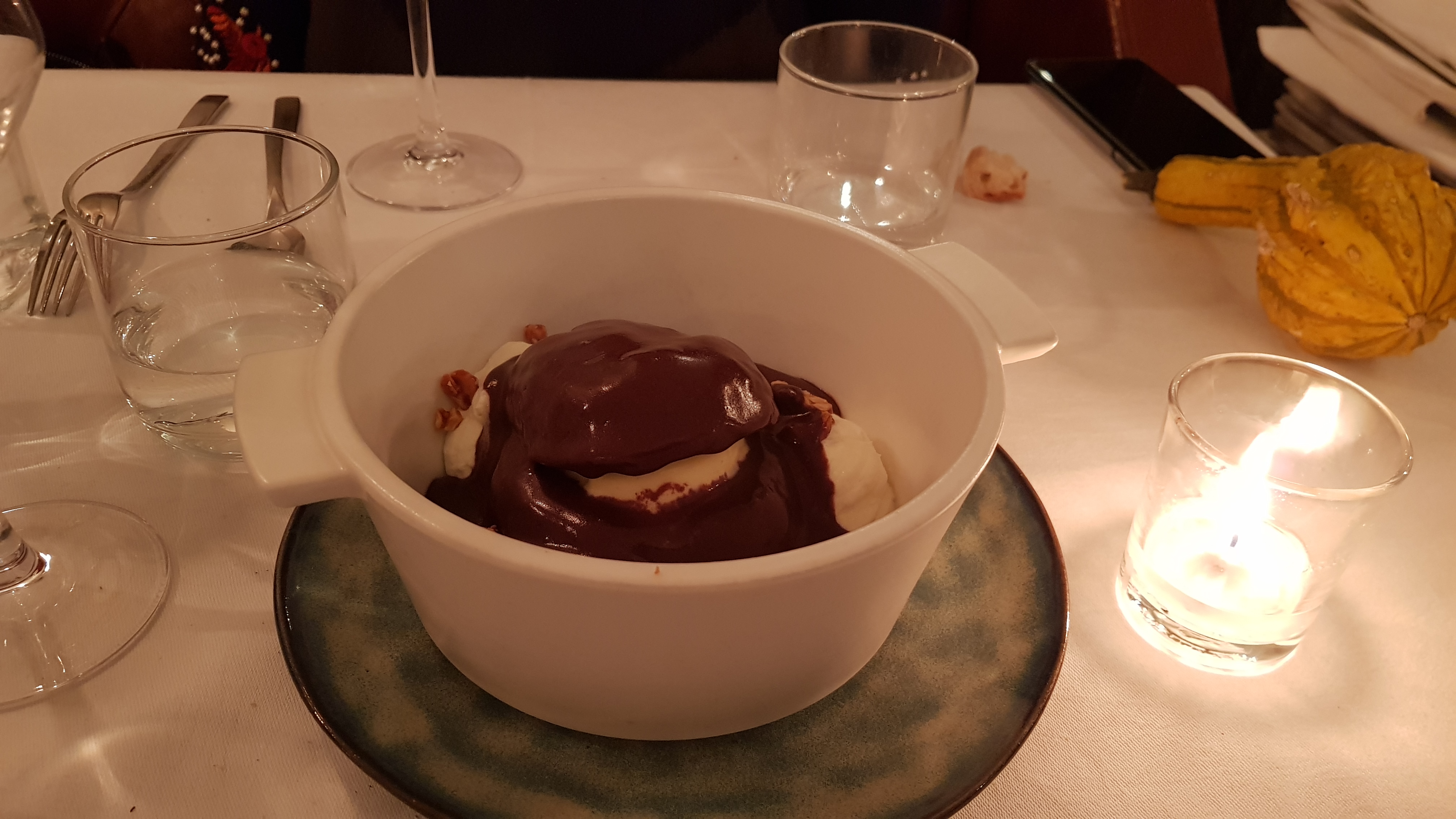 Petit restaurant mignon , personnalisé, cuisine originale , belle presentation... Revisite du kebab version « chic » Fondant bien fort en chocolat avec une petite crème fraîche ... Le tout maison ... What else ?? Merci !