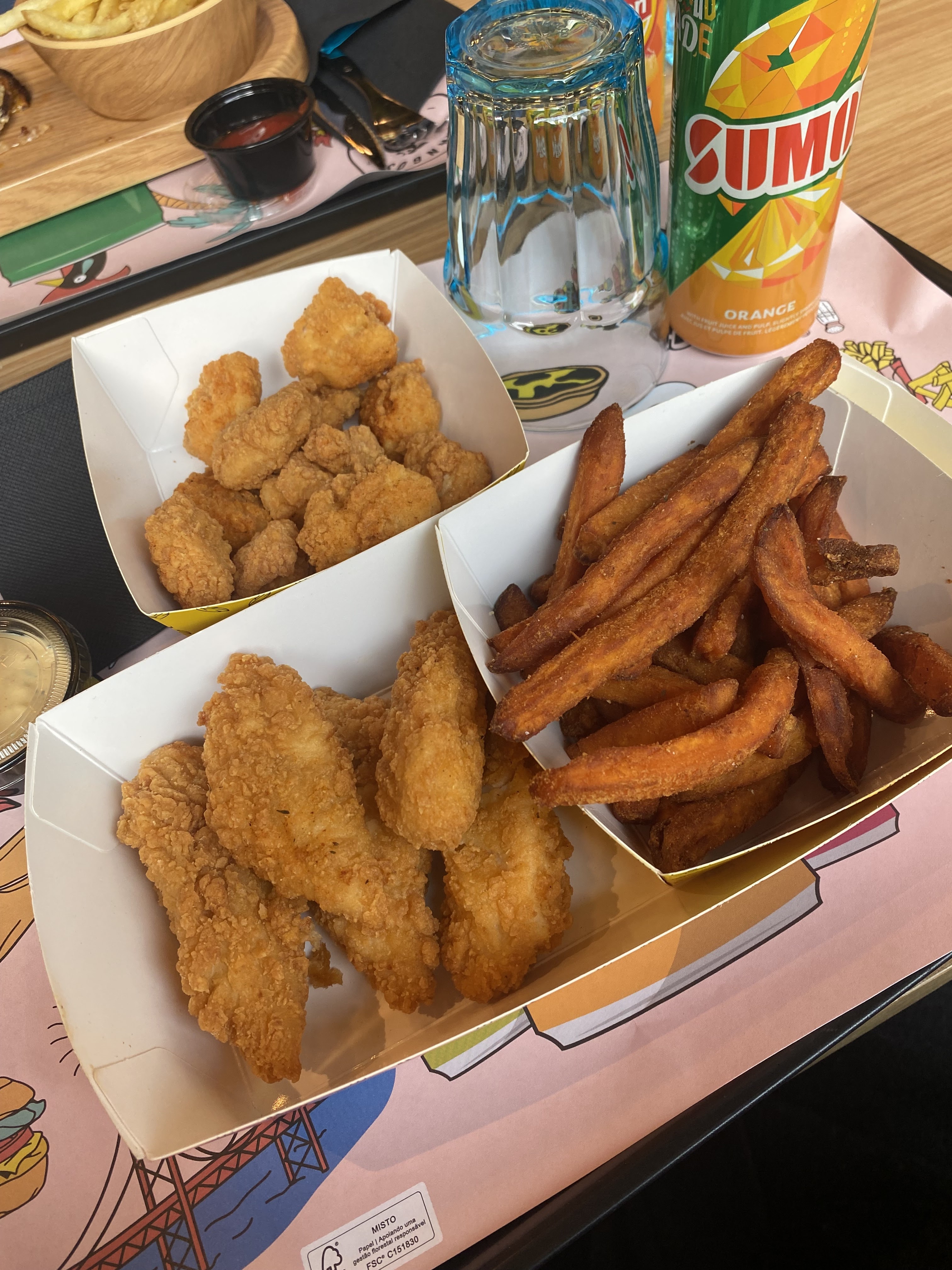 Parfait, rien à redire. Tenders et Burger Iberica très bons. Frittes de patates douces excellentes. Service rapide. Packaging sympa !