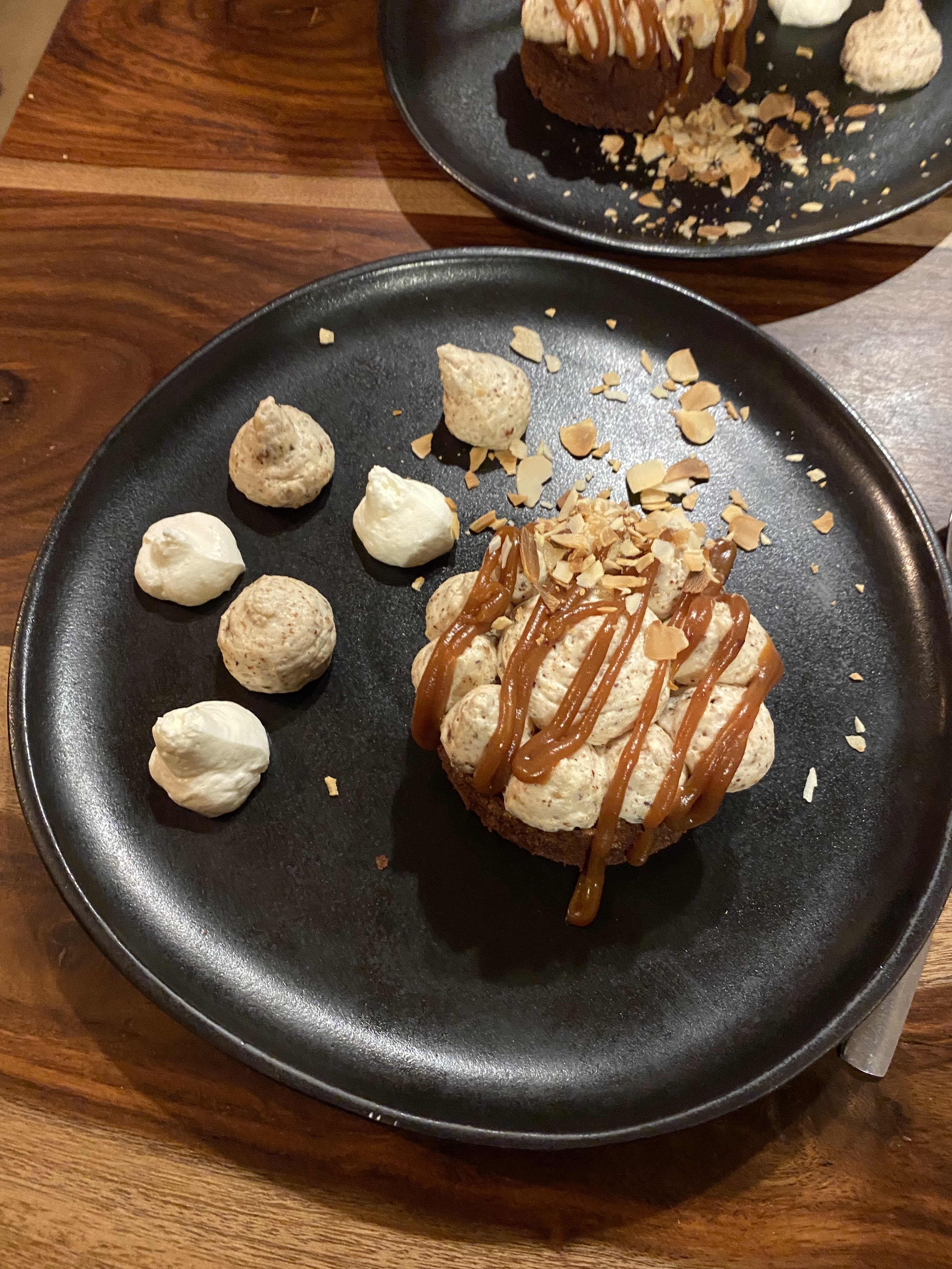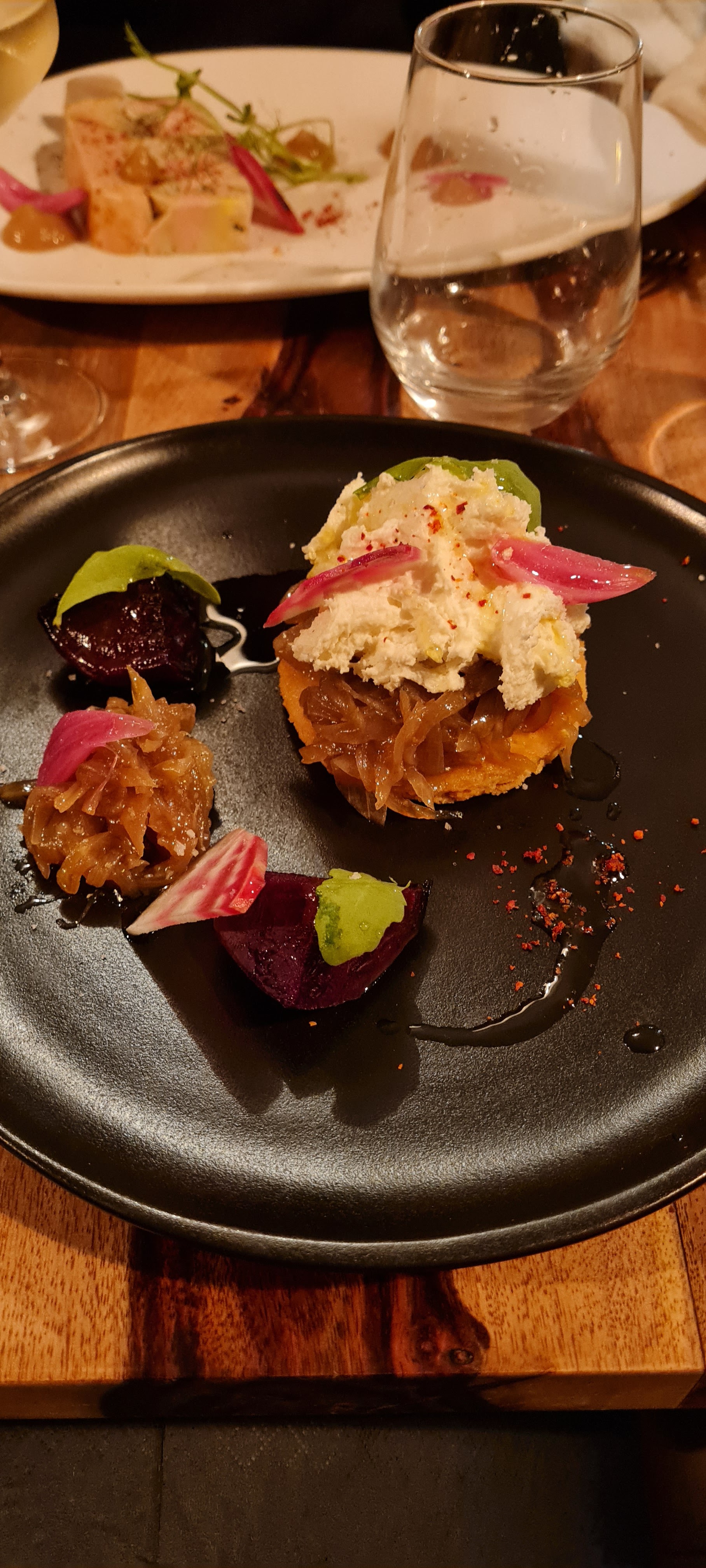 Wow. Juste… wow. Une carte à échelle humaine, faite de mets originaux et gourmands qui mélangent des goûts auxquels je n’avais jamais pensé ensemble ! La tatin d’échalote avec le boudin d’oignons grillés était en particulier délicieuse, et quelle présentation, rien que de le voir en savait qu’on avait fait le bon choix. Quoique, les pâtes maison aux cèpes qui sont arrivés après nous ont fait dire la même chose ! On s’est tous régalés, de l’entrée jusqu’au dessert. Et encore merci pour la flexibilité sans encombres pour permettre à certains d’entre nous de choisir de sans gluten et lactose aussi! 😍