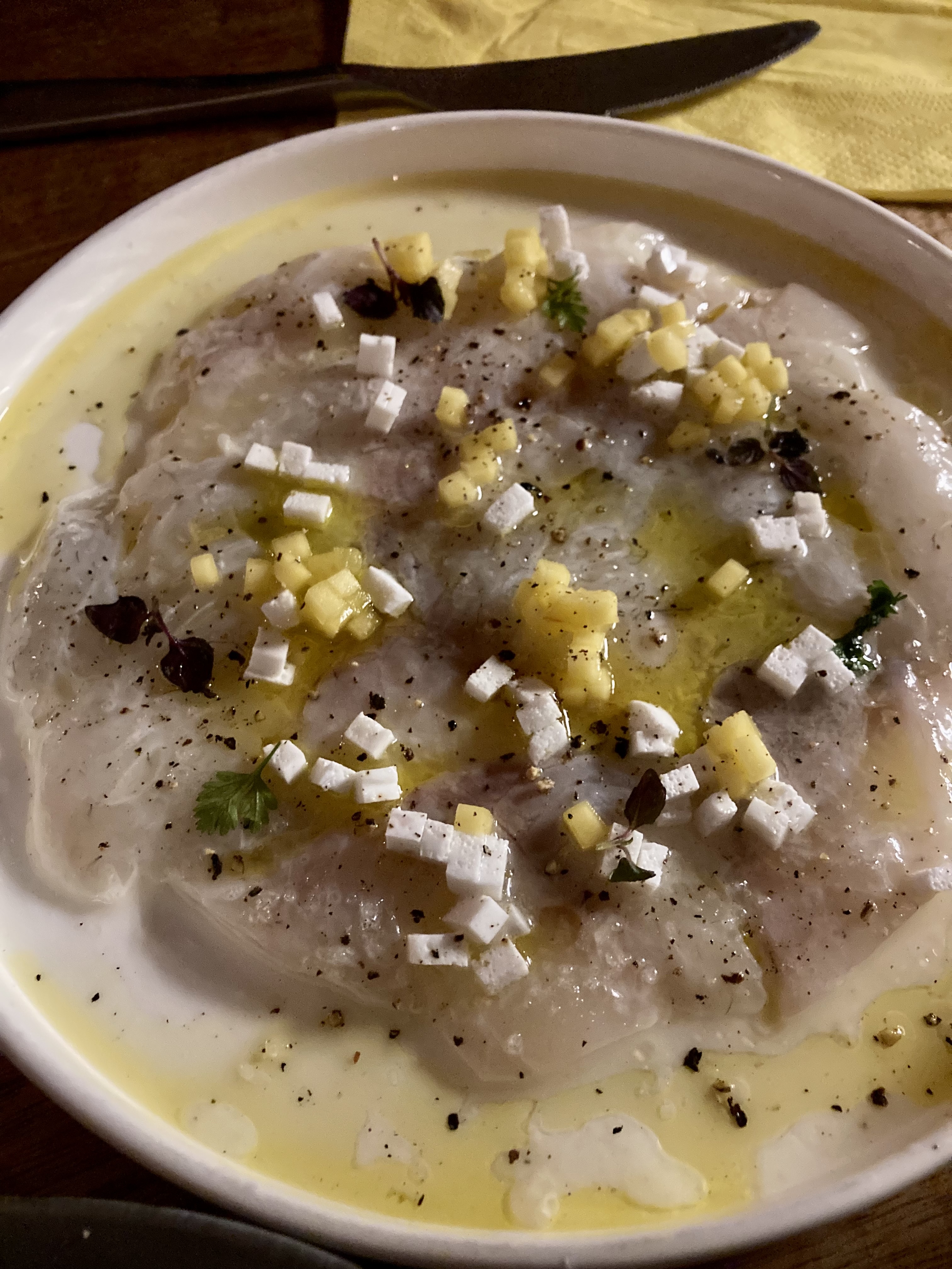 Excellent ! Nous avons pris 5 plats. Une assiette de charcuterie pour commencer puis un carpaccio de daurade, un poulpe grillé et une volaille grillée, et enfin une assiette de fromage. Tout était excellent avec un parfait équilibre entre qualité des matières premières, assaisonnement, cuissons… une mention spéciale pour la daurade. Les vins aussi étaient très bons. Je terminerai par un service efficace et très sympathique. Il faut y aller !