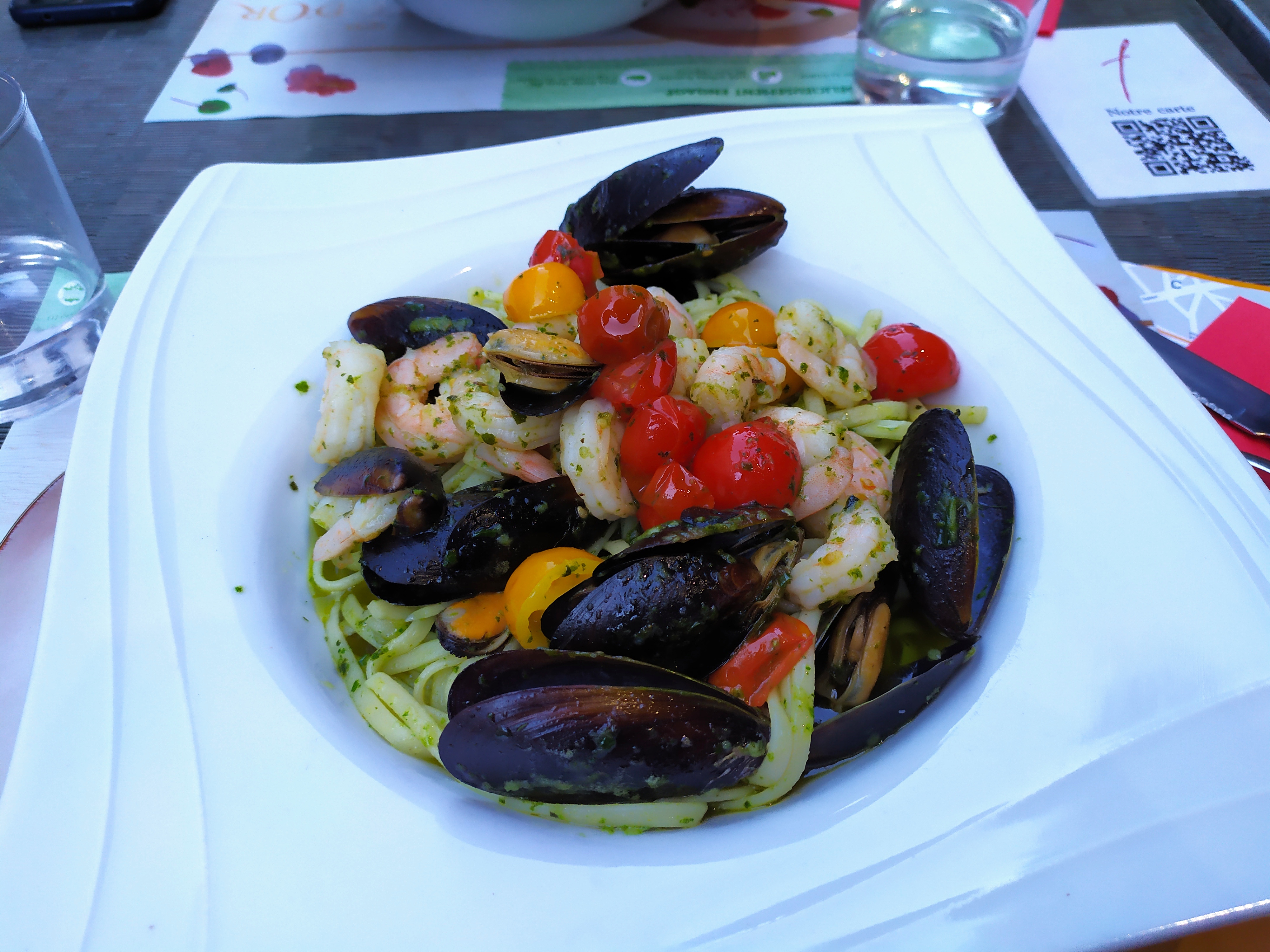 Gros bémol ce soir .. alors que les plats de notre table de 8 sont très bons .. je me retrouve avec plusieurs morceaux de crevettes dans mon assiette de gnocchis gratinés au gorgonzola (antennes, carapace ..). Gênée je demande à changer d’assiette, sachant en plus que je suis actuellement enceinte. On me change l’assiette et je reçoit des excuses mais au moment de la note, qui s’élève à presque 200€ .. rien d’offert pour le dérangement. Ni café, ni même une boisson .. déçue de ce geste non commercial. Sachant que j’ai mangé seule quand tout le monde avait terminé son plat.