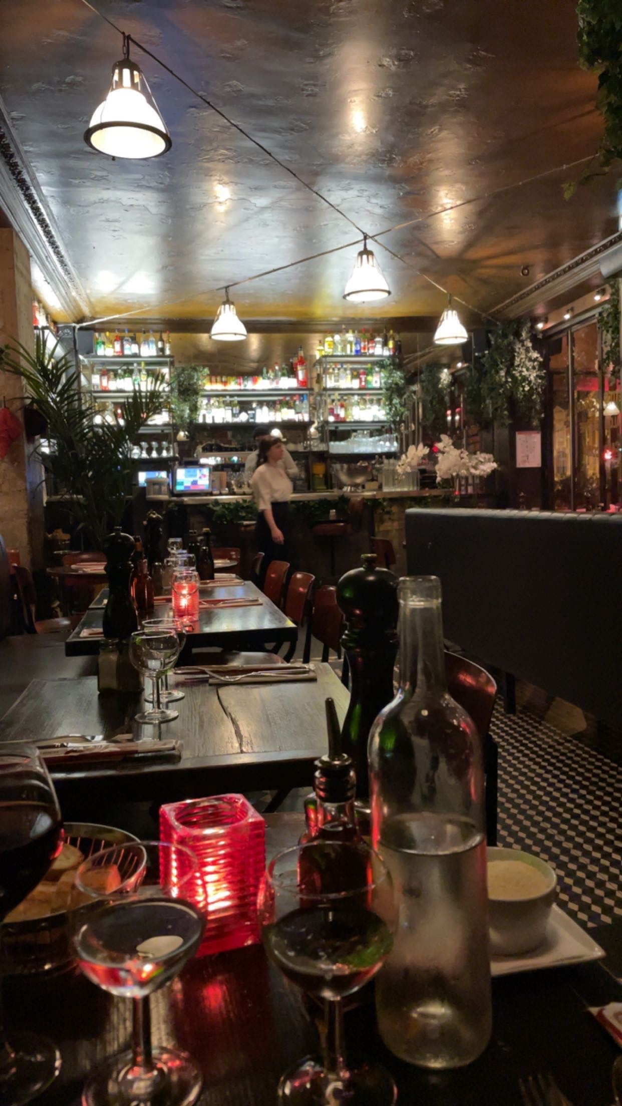 Soirée très agréable. Bonne nourriture. Ne vous attendez pas à un repas super bon marché. Bon service efficace avec une ambiance agréable. Les toilettes étaient même éclairées aux bougies pour améliorer l’expérience ! Le quartier général autour de Monceau et de Villiers est très agréable.
