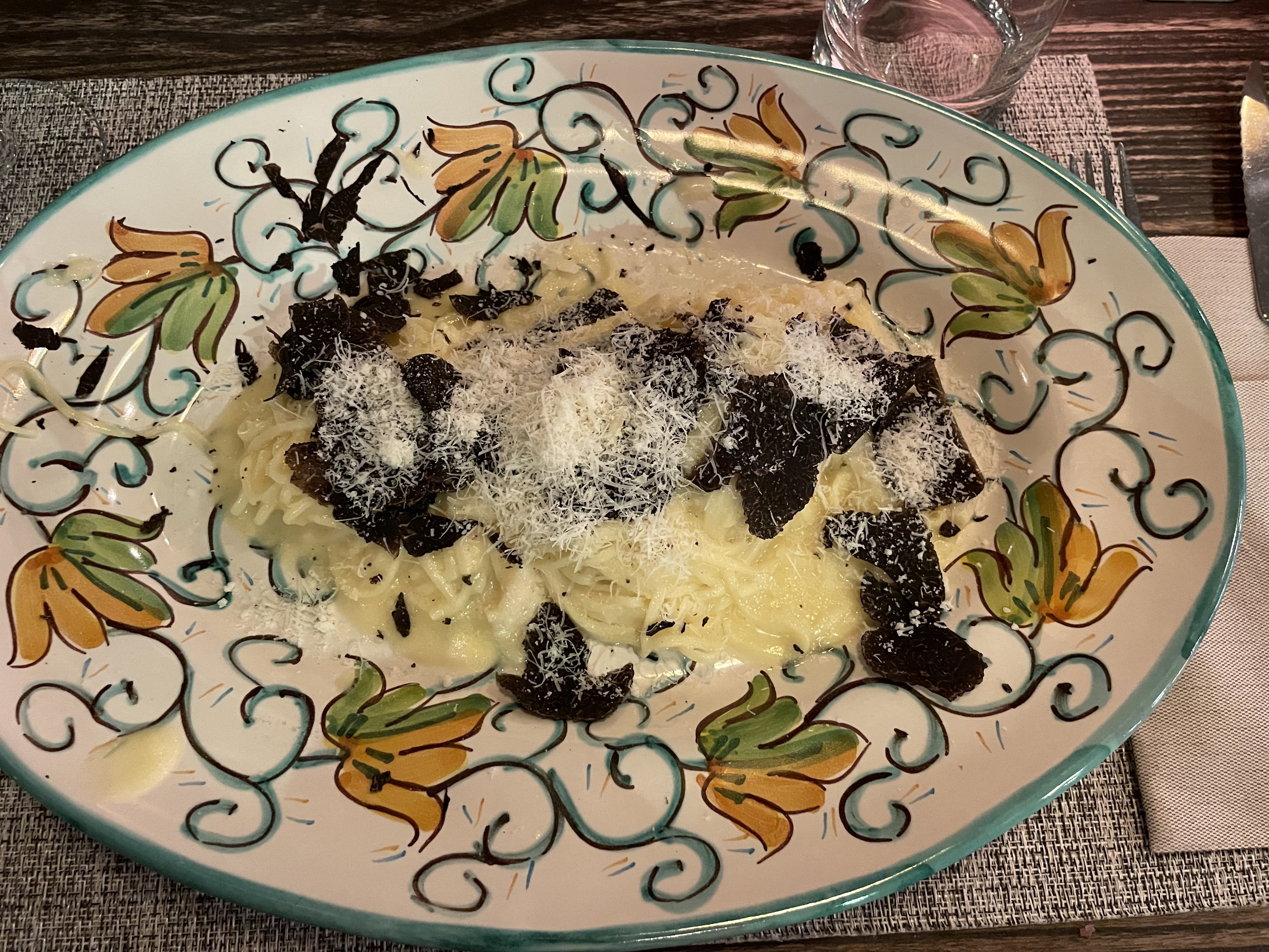 Le bonne cuisine italienne généreuse comme on aime : olives fraîches, mozzarella de très bonne qualité, les pâtes aux truffes à tomber par terre ♡