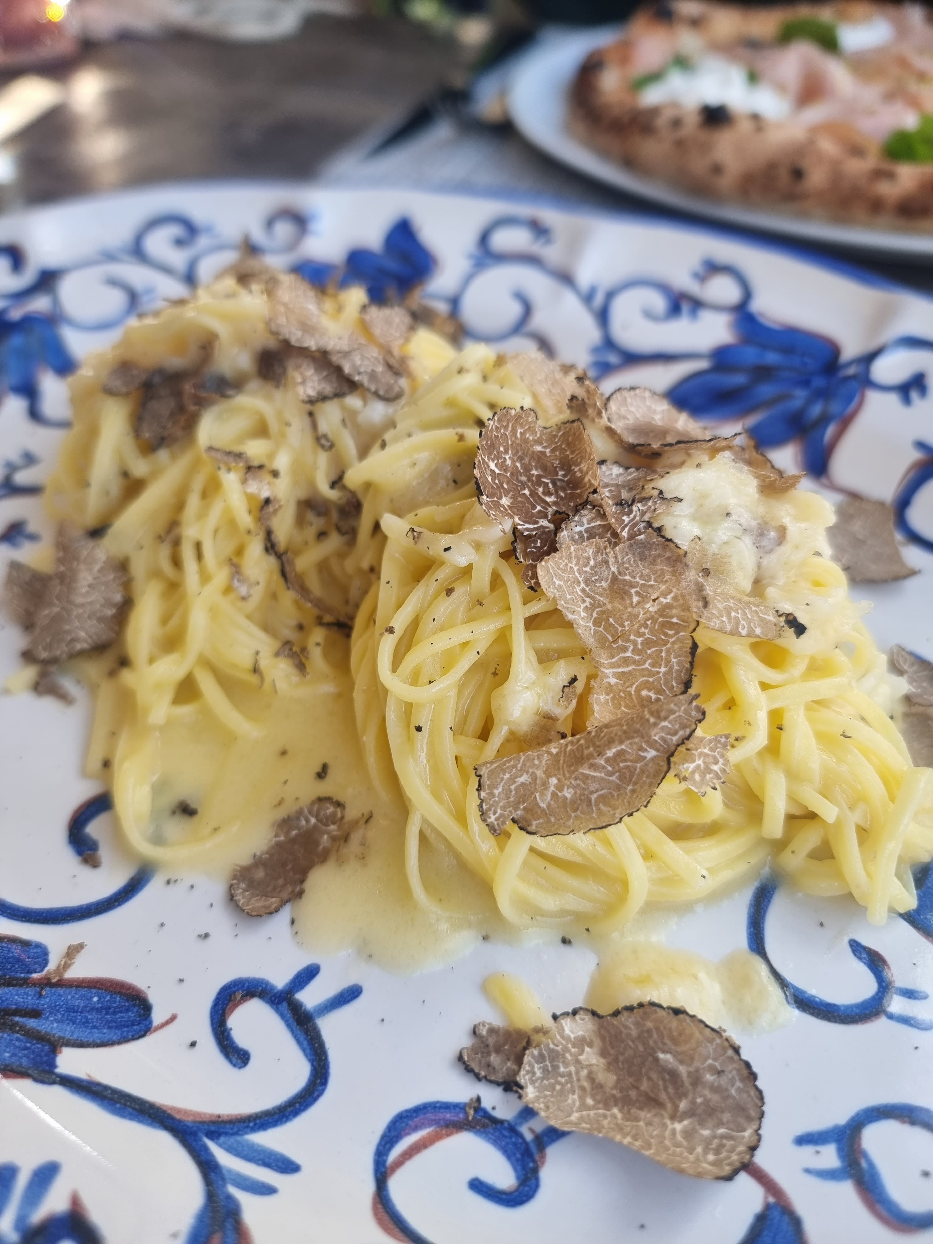 Je recommande à 100% ce restaurant, magnifique, ambiance au top, nous avons pris des pizzas fromage et pâtes au truffes c’est très bon. Le personnel est très accueillant et souriant.