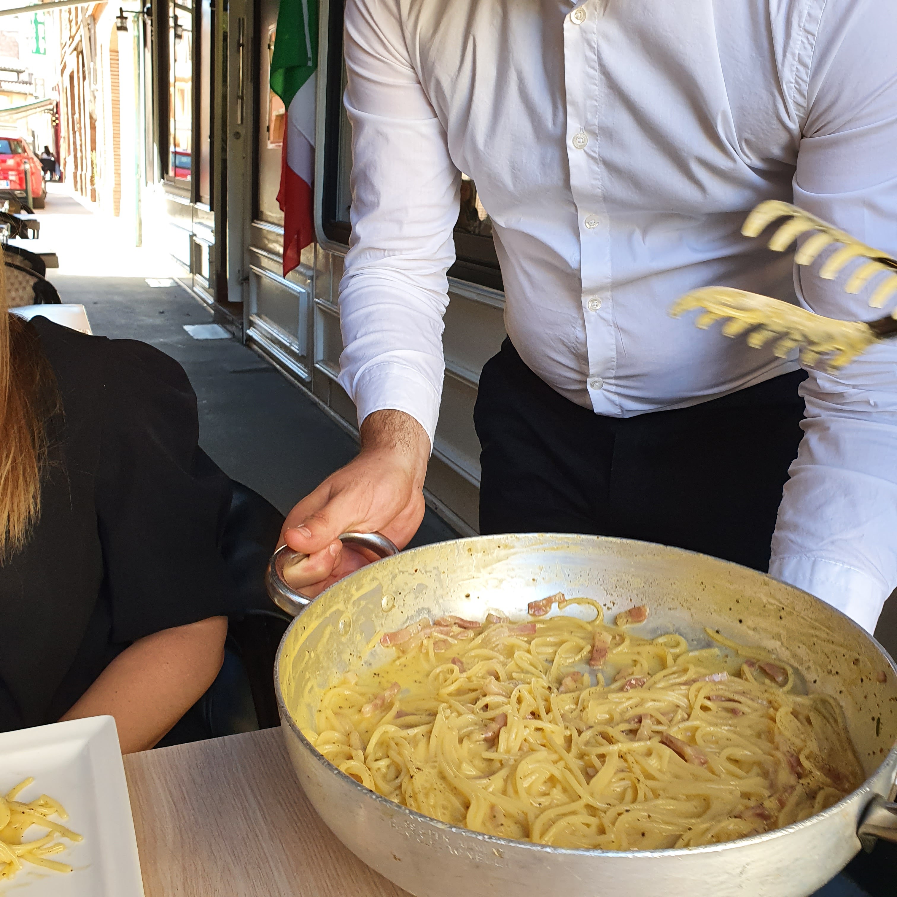 Le samedi 11 nous allons dans ce restaurant italien à Toulouse. Malheureusement, nous n'avons pas pu réserver à temps mais le personnel nous a accueillis très gentiment. Nous nous sommes assis et avons commandé 2 sprizz, puis 2 plats frits, une bonne bouteille de pinot grigio, des raviolis à la carbonara et des pappardelles aux langoustines et à la truffe. Enfin, un café gourmand aux spécialités italiennes. Pâtes maison et produits de qualité. Endroit très propre et personnel très sympathique. Merci à Alberto, David et Chef Carlo pour votre sérieux dans ce travail. Continuez comme ça. Roberto et Anne