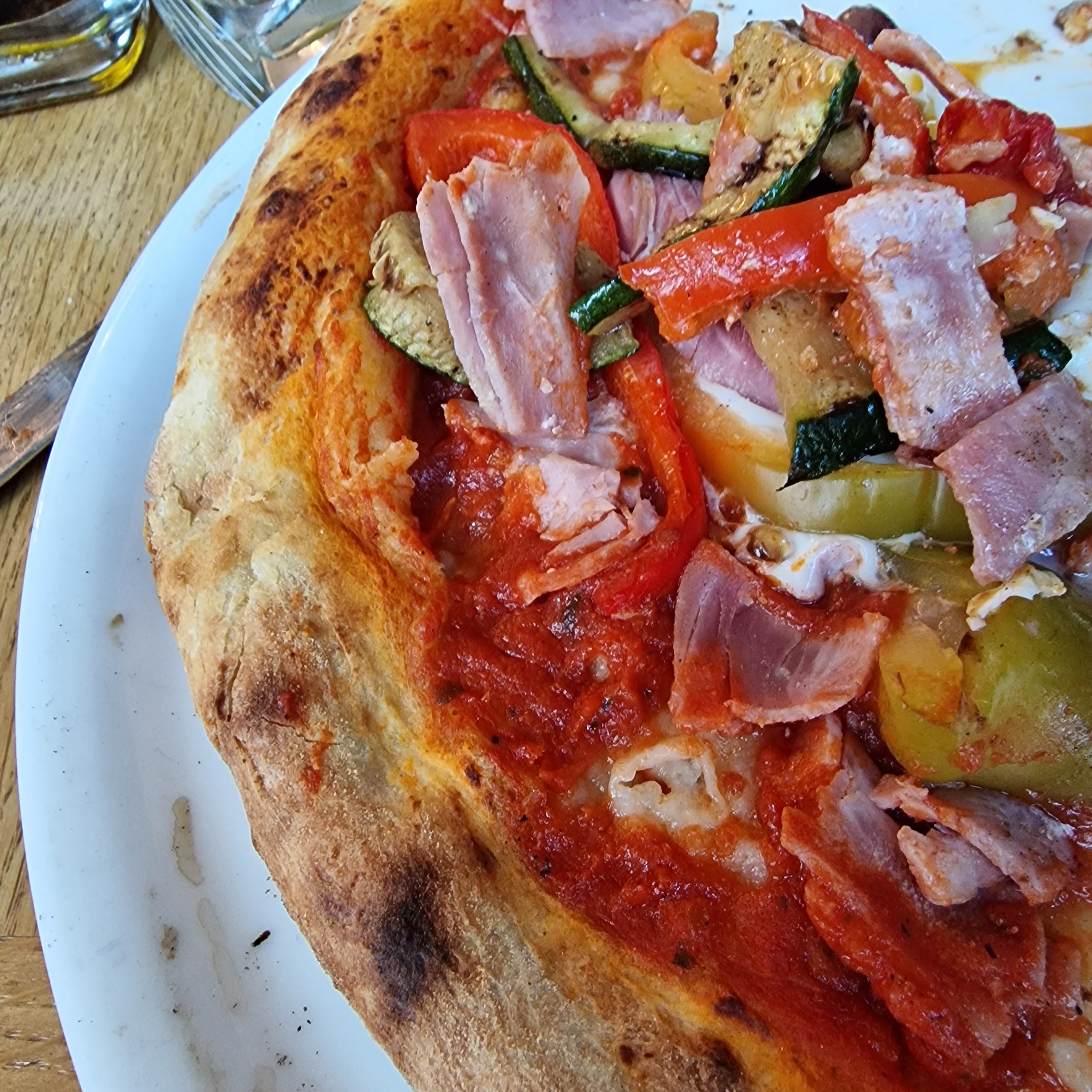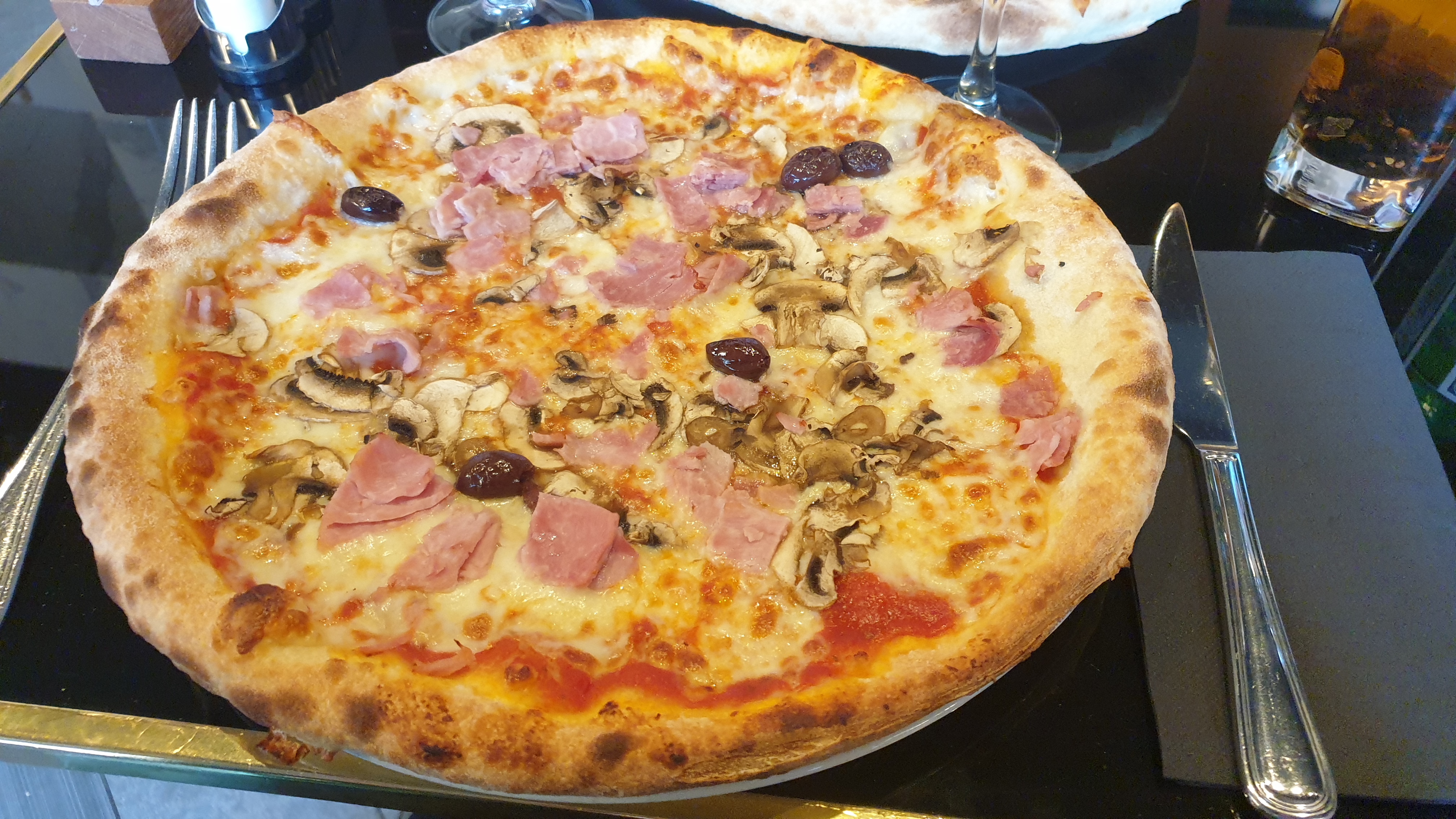 Pizza Parme bien garnie, mais la pâte était vraiment pas bonne, très compact. Peut être un problème de cuisson ? Vraiment déçus, surtout pour ce prix…