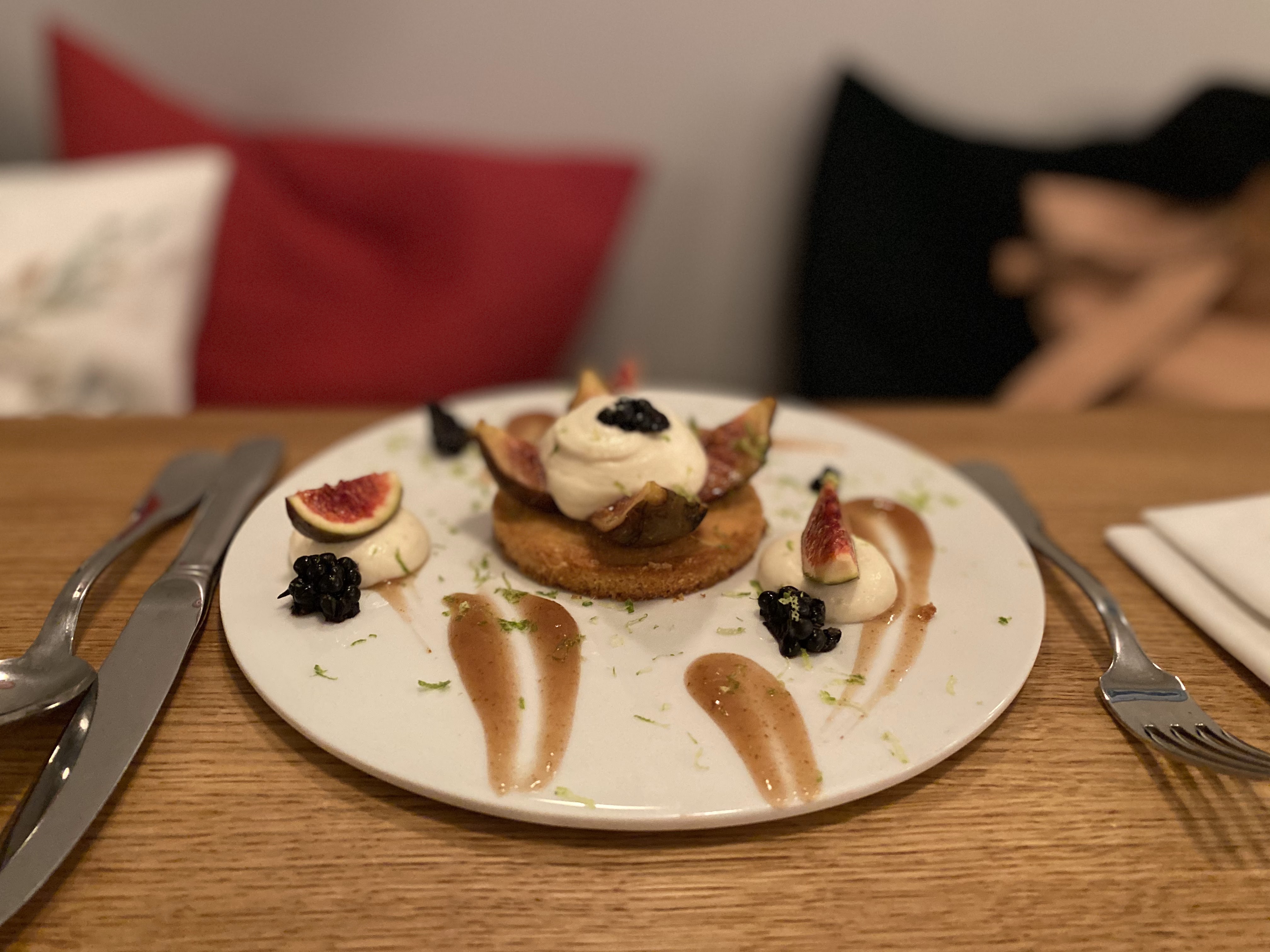 Cadre simple mais agréable. Personnel très aimable et efficace. Je n'avais pas faim. J'ai finalement dévoré entrée, plat et dessert ! Cuisine fine et savoureuse. Note spéciale pour la pavlova à la figue fraîche, incroyablement parfumée. Vin magnifique et à bonne température. Un dîner délicieux pour un prix raisonnable. Voilà des gens plein de talent, qui se donnent beaucoup de mal pour vous faire passer un moment parfait. Merci