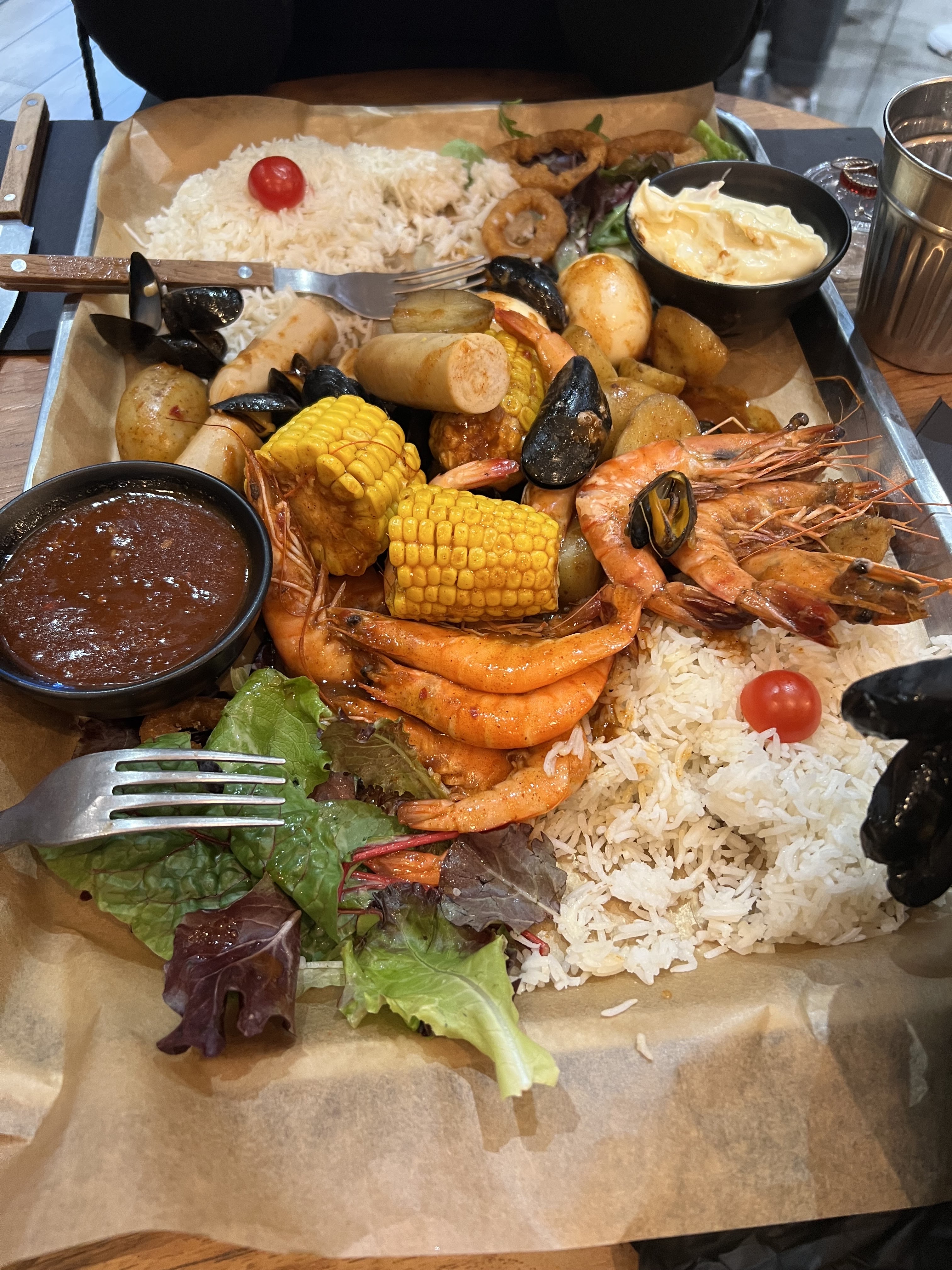Nous sommes partis dîner 🍽️ aux alentours de 21h. La fil d’attente était longue. Cependant nous avons prit de la seafood classic 🦐🍤. C’était bon, mais très salé et on sentait beaucoup le cumin dans la sauce (peut être parce que nous n’aimons pas le cumin). Niveau quantité-qualité-prix nous avons trouvé un peu cher.
