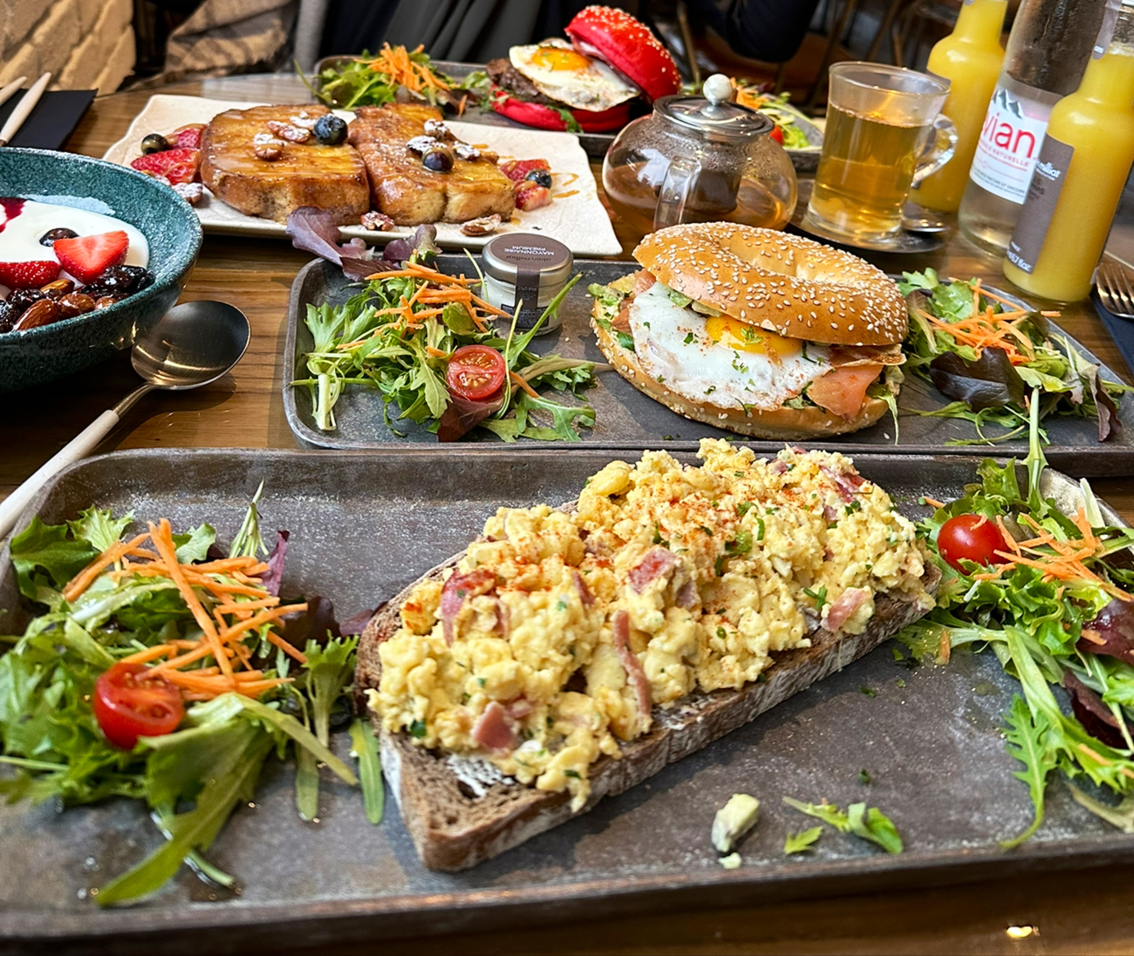 Niveau brunch les toast avocat saumon et le pain perdu incroyable !! C’est excellent Moins fan des pancakes beaucoup trop bourratives et pas aériennes sinon top