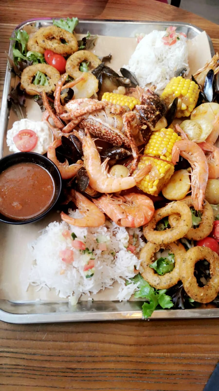 Honnêtement 80€ pour le plus petit service de fruit de mer m’a énormément choqué , sa n’en valais pas DU TOUT son prix , servi avec des pommes de terres , des œuf des saucisses , du riz …. La sauce rouge n’est pas très bonne .. j’ai été déçue car j’en avais rêvée depuis des mois d’y aller .