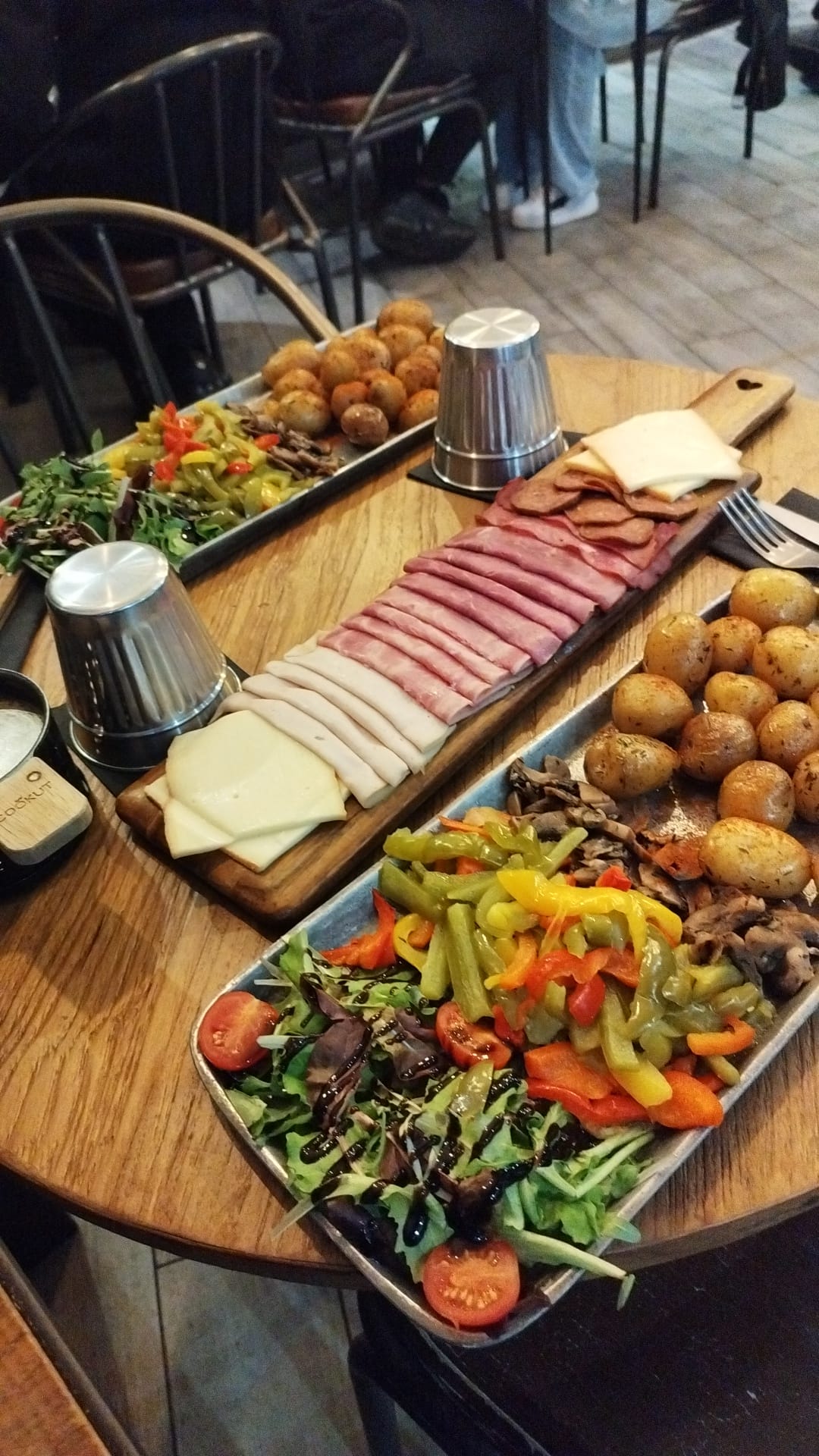 Table de 3 personnes, et on décide de prendre une raclette chacune. Je suis déçu .. le fromage n’est pas à table et vous devez appeler pour qu’on vous resserve du fromage, sachant que tout le monde redemande du fromage. 15 minutes presque à attendre .. puis presque 45 min ! du coup plat froid, et plus faim. En plus on demande nos boissons à plusieurs reprises qui nous on été servi à la fin du repas. 2 étoiles car la charcuterie était bonne.