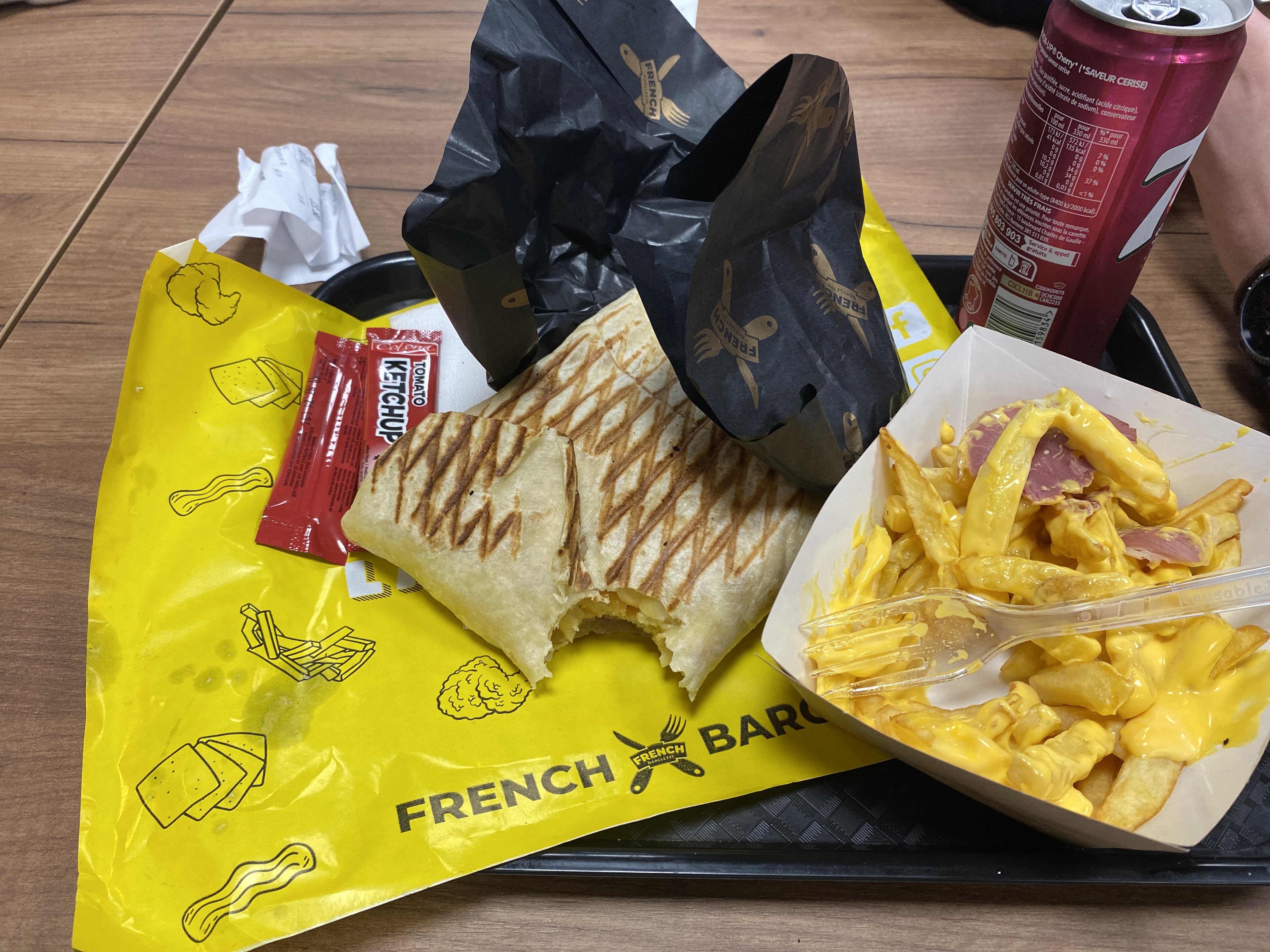Trop déçue aujourd'hui, d'habitude j'ai une bonne commande mais aujourd'hui mes frites dans la barclette sont à moitié cuite et peu de sauce et peu de fromage et de viande ! La vie est déjà assez cher alors quand on veut se faire plaisir on est mal servi 😮💨😮💨😮💨