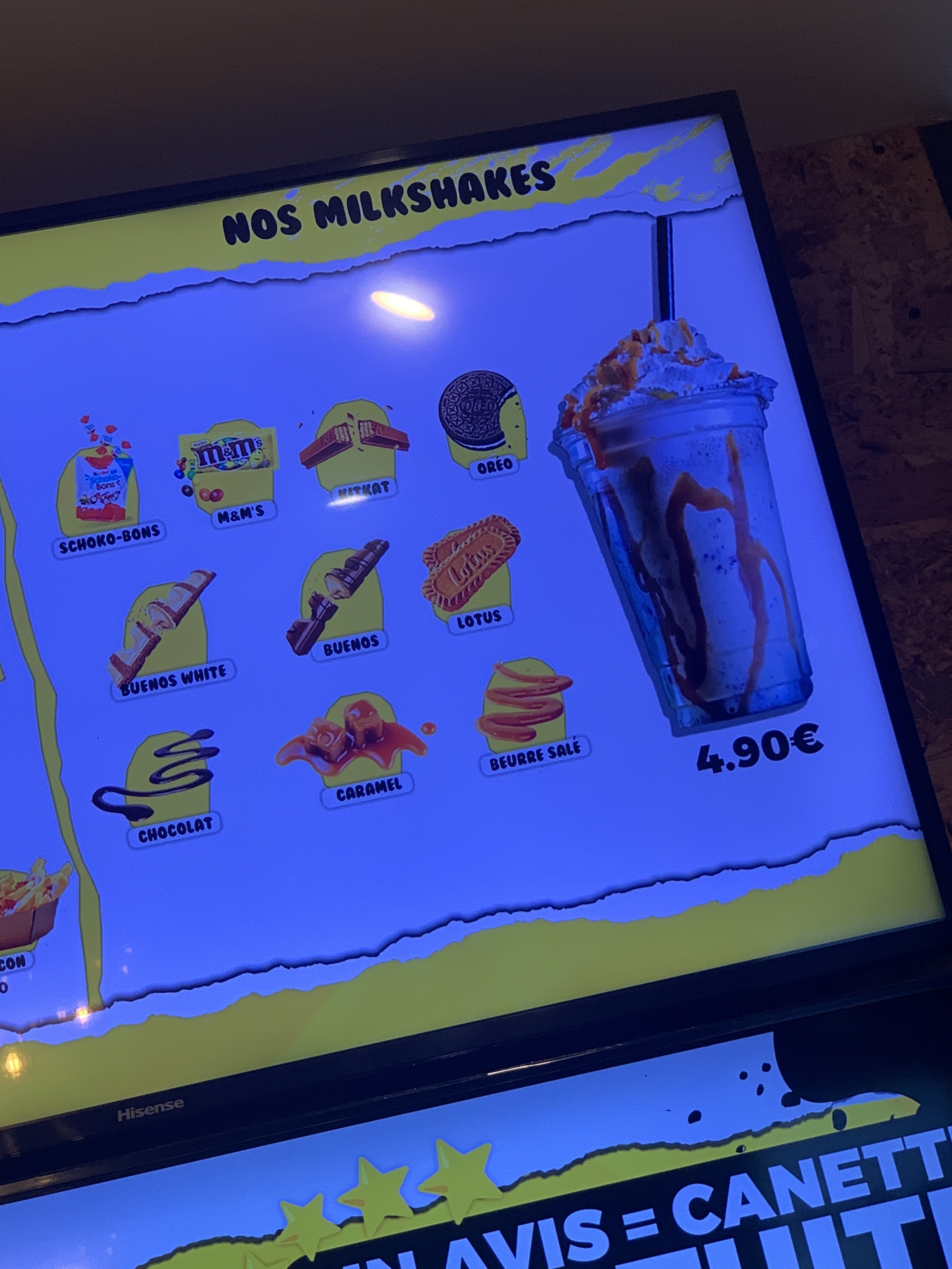 J’y étais allée une première fois parce qu’on me vantait les famoso Milkshake du French Barclette, étant végétarienne je trouvais cela dommage que rien ne soit proposé… jusqu’à ce que j’y retourne ce soir et puisse enfin trouver plat à mon goût 🤌😸 merci énormément , je conseille vivement les milkshake kinder Bueno