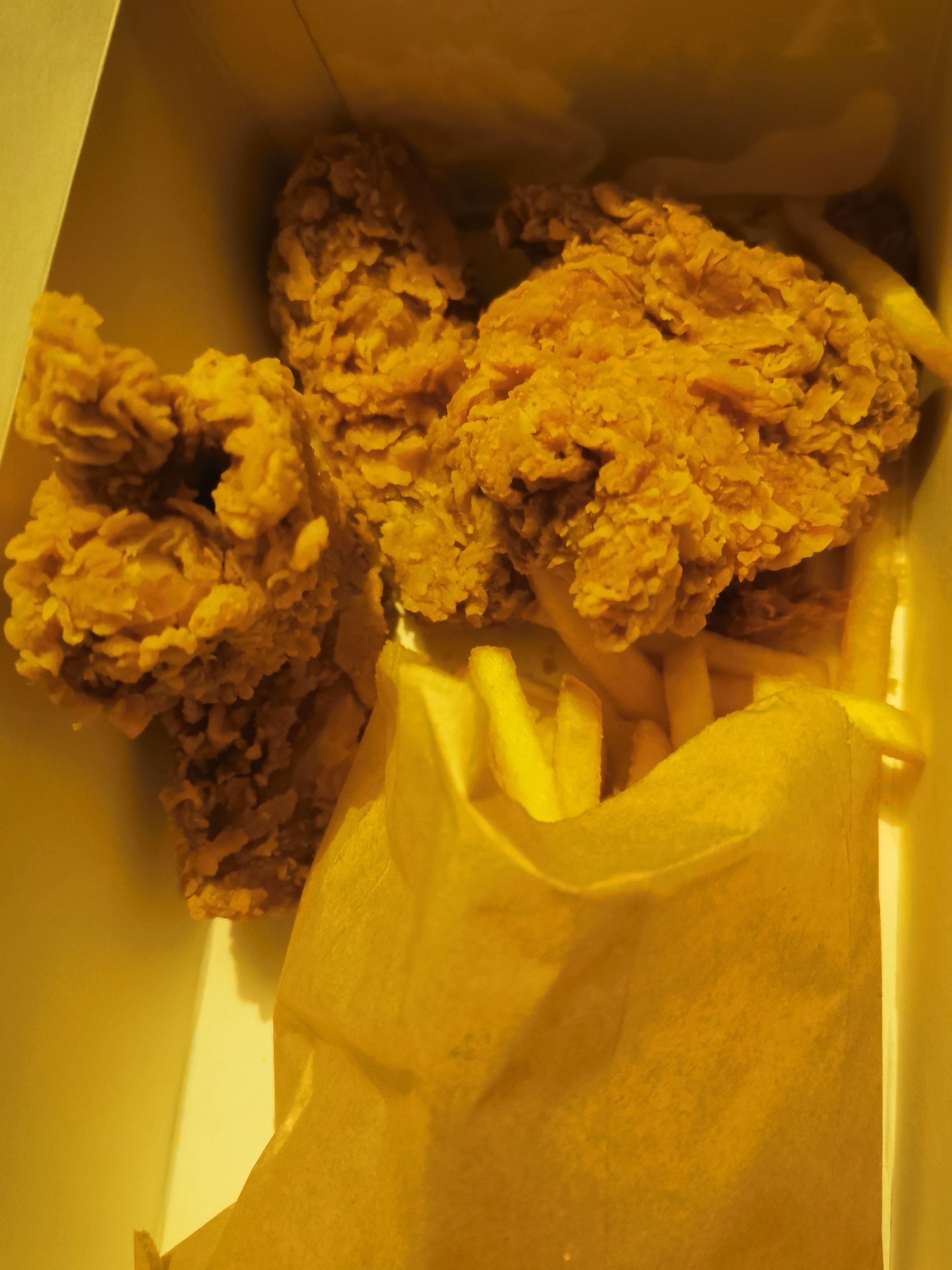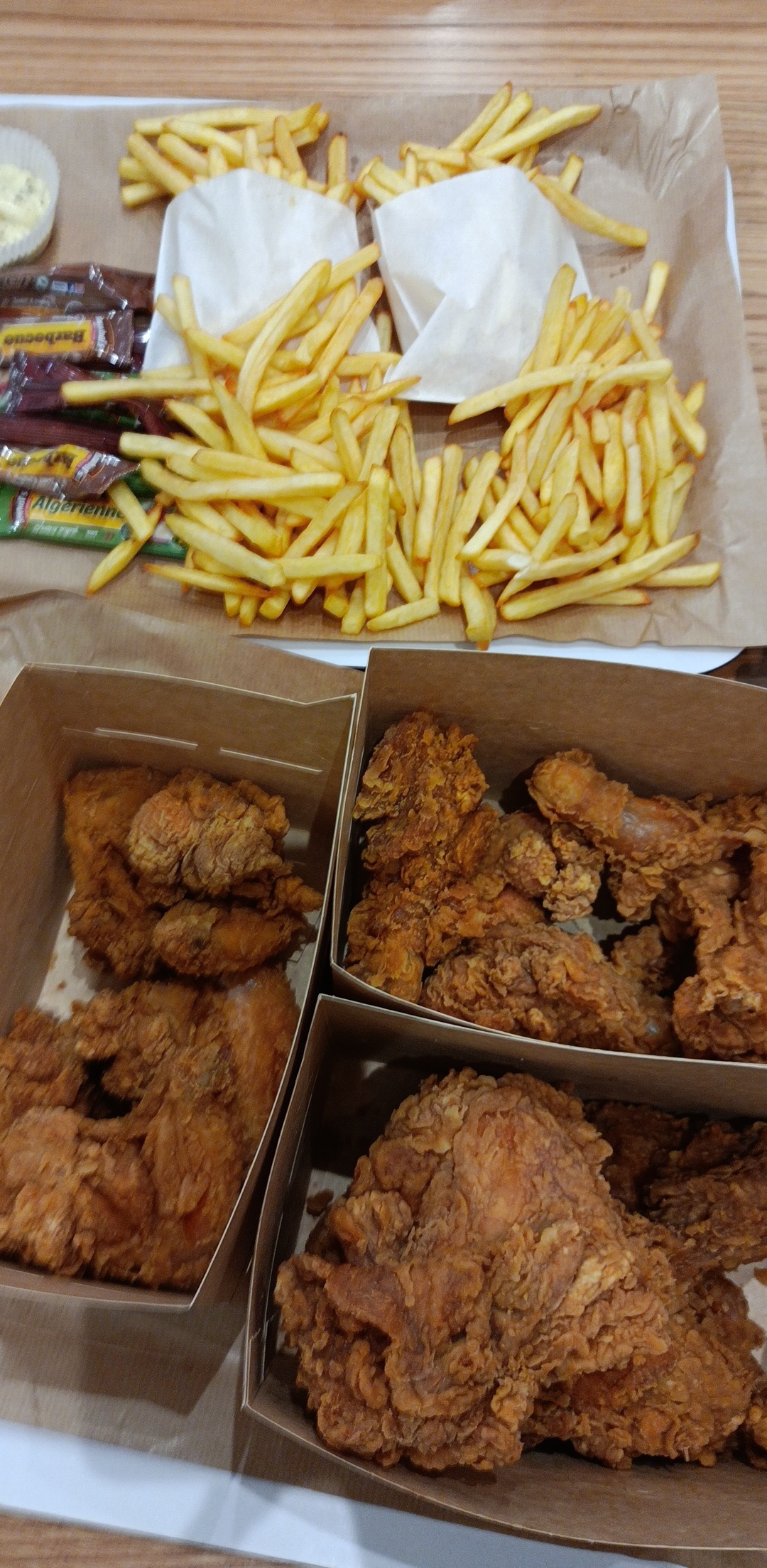 Vraiment déçu , comme quoi l’apparence est trompeuse. On a commander un sceau de poulets sauf que y’a plus de chapelure que la viande. On a du tt jeter , ensuite Avec le peu qu’on a manger on a vécu un enfers Suite à ça. Mal au ventre , forte diarrhée dû à cette alimentation je vous déconseille. Très épicé alors que c’est mentionner et très salée immangeable.