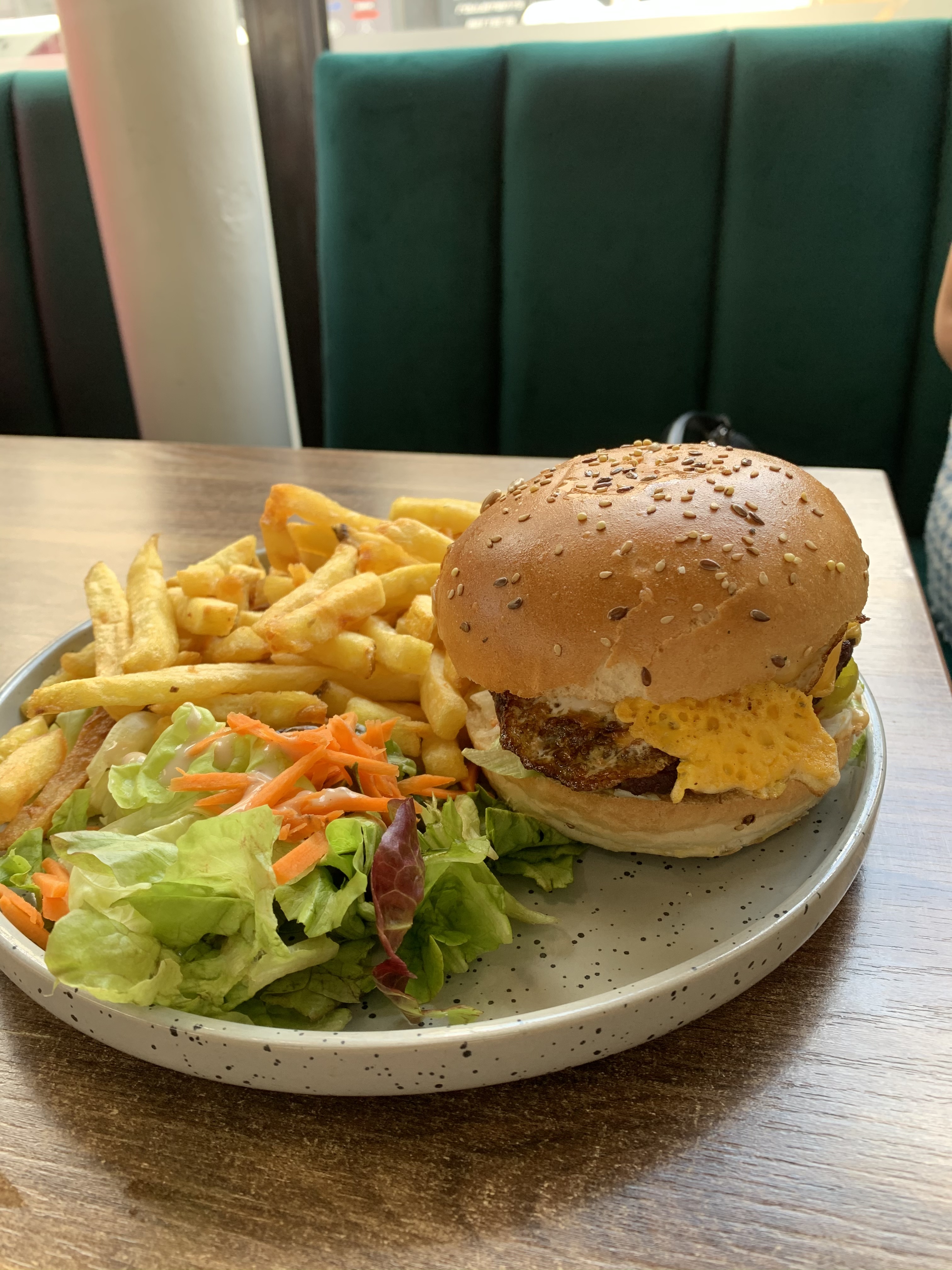 J ai mangé un burger frite ,bah pas terrible pour 12 euro 50 y a beaucoup mieux et pour les frites maisons j ai un gros doute ça ressemblait plus à des frites surgelées très déçu je reviendrai plus
