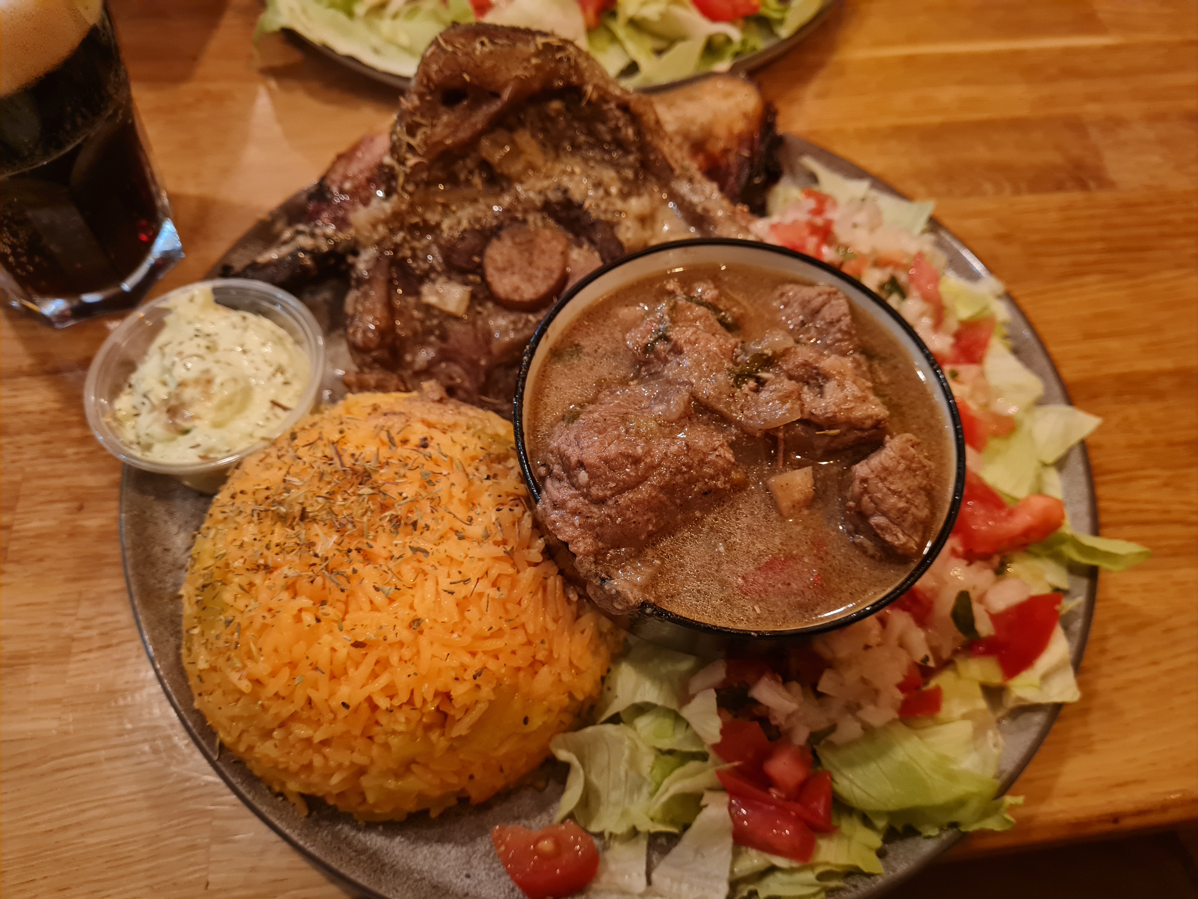 Les portions sont généreuses, mise à part le bœuf qui est coriace sous la dent, les viandes sont plutôt bien cuites. Les accras étaient trop cuits à l'extérieur, pas cuits à l'intérieur et beaucoup trop massifs, quelle déception c'est un classique quand même !!! On ne retrouve pas l'esprit des caraïbes car le manque d'assaisonnement se fait cruellement sentir, c'est une réelle frustration. PS : même la sauce verte n'a pas de goût
