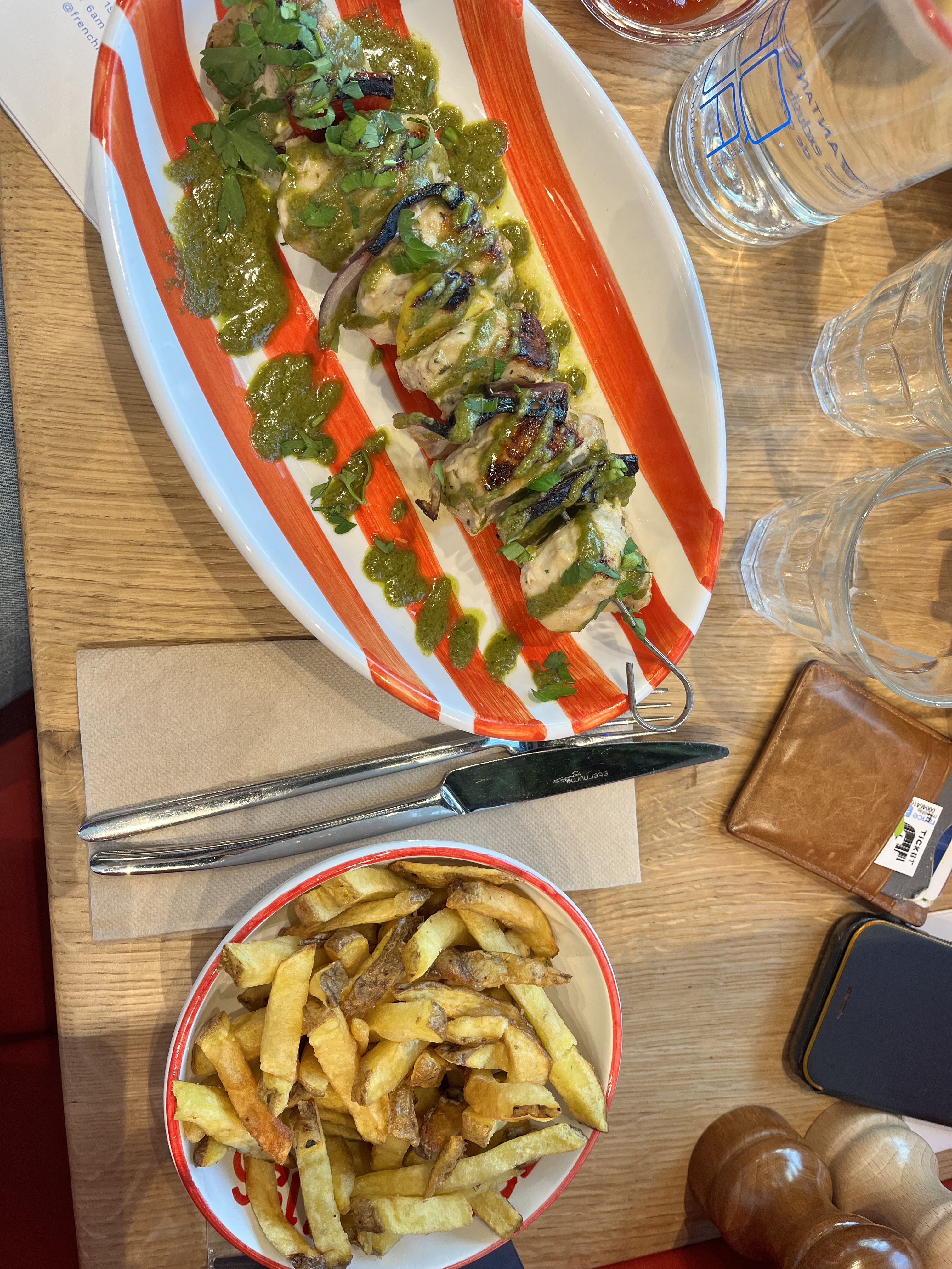 Les serveurs sont franchement incompétents et pas agréables du tout ! J’habite juste à côté et je me faisais un plaisir de venir découvrir ce nouveau restaurant. Nous étions trois : nous sommes deux à commander un spritz st germain réponse « on a plus de spritz » nous prenons donc un autre cocktail … pour le repas nous voulons deux brochettes de bœuf réponse : « nous n’avons plus de brochettes de bœuf mais prenez le poulet c’est pareil » nous prenons donc autre chose… arrive le dessert trois desserts à la carte … je choisis les profiteroles… réponse « on a plus de profiteroles » bon finalement une a pris un dessert et moi un café … il était 20h30 pas 23h quand nous sommes arrivées c’est incroyable qu’il n’y ait plus rien ! Au bout du compte je n’ai pas pu manger et boire ce que je voulais … En plus de cela, les serveurs voulaient sans arrêt nous débarrasser de nos assiettes alors que nous n’avions pas fini et lorsqu'il était temps de débarrasser pour proposer le dessert nous avons attendons trente minutes alors qu’il n’y avait presque plus personne dans le restaurant et avons eu le dessert avec la table pas débarrassée… Bref très très très déçue